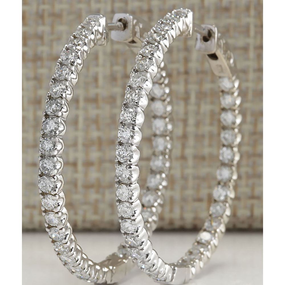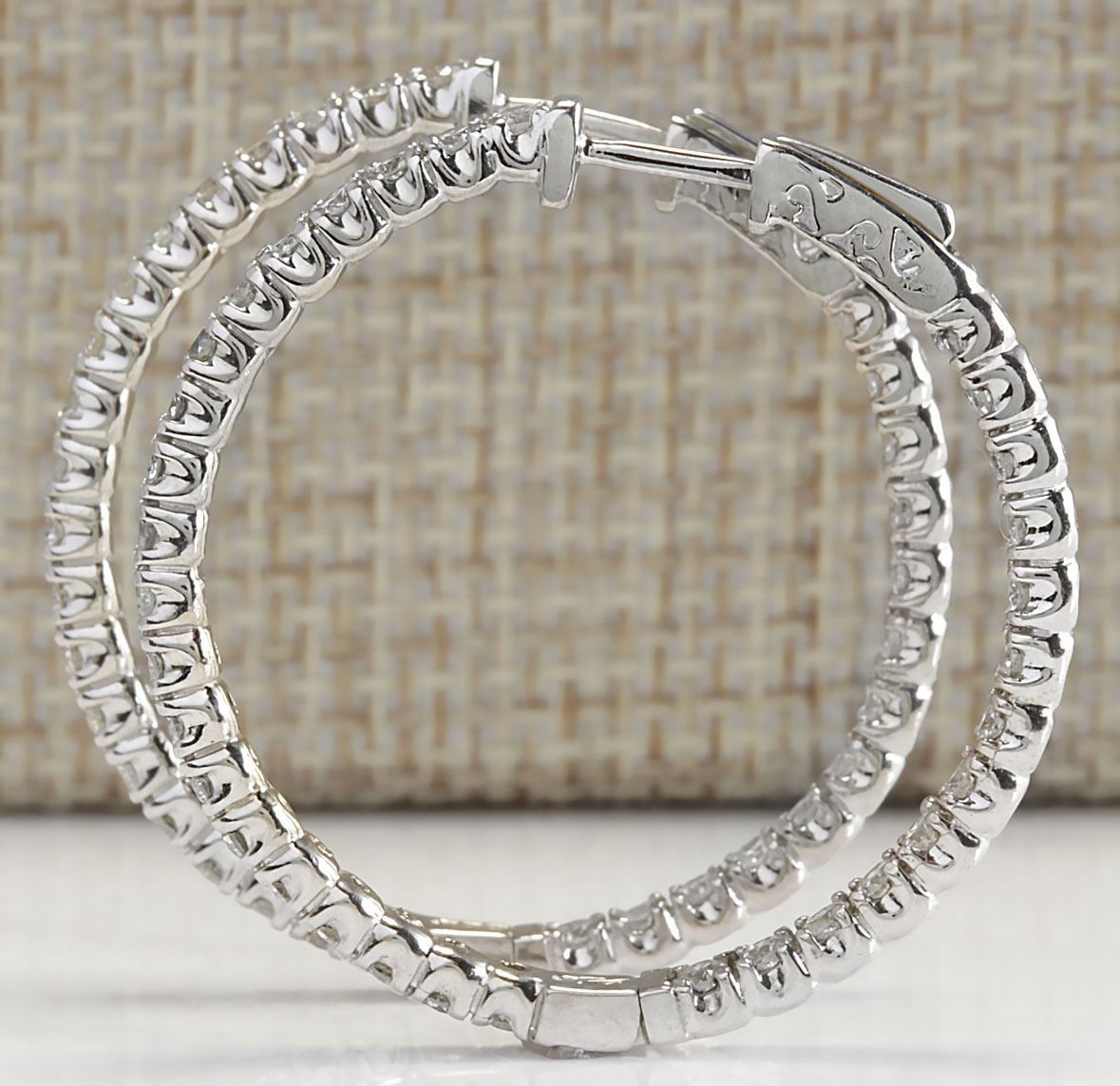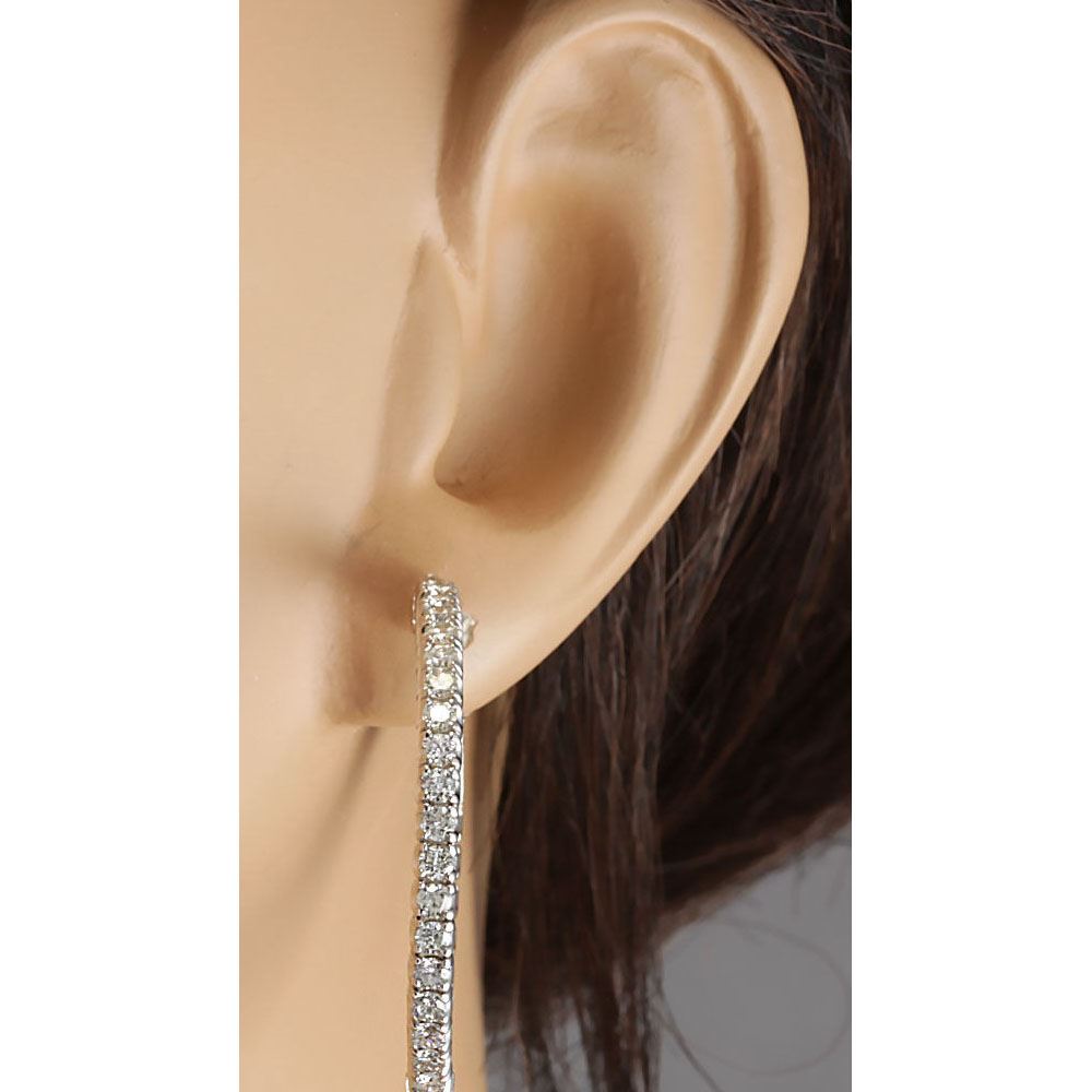 2.98 CTW Natural Diamond Hoop Earrings 14k Solid White Gold