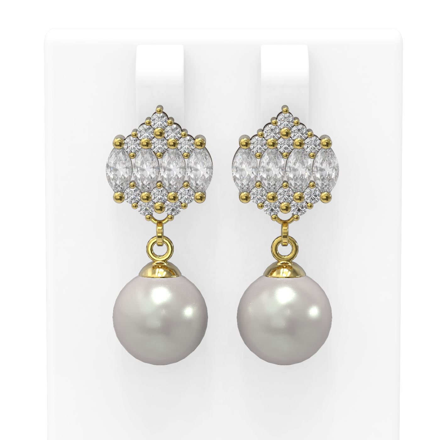 SKU: 55657 ---- 2.98 ctw Diamond & Pearl Earrings 18K Yellow Gold