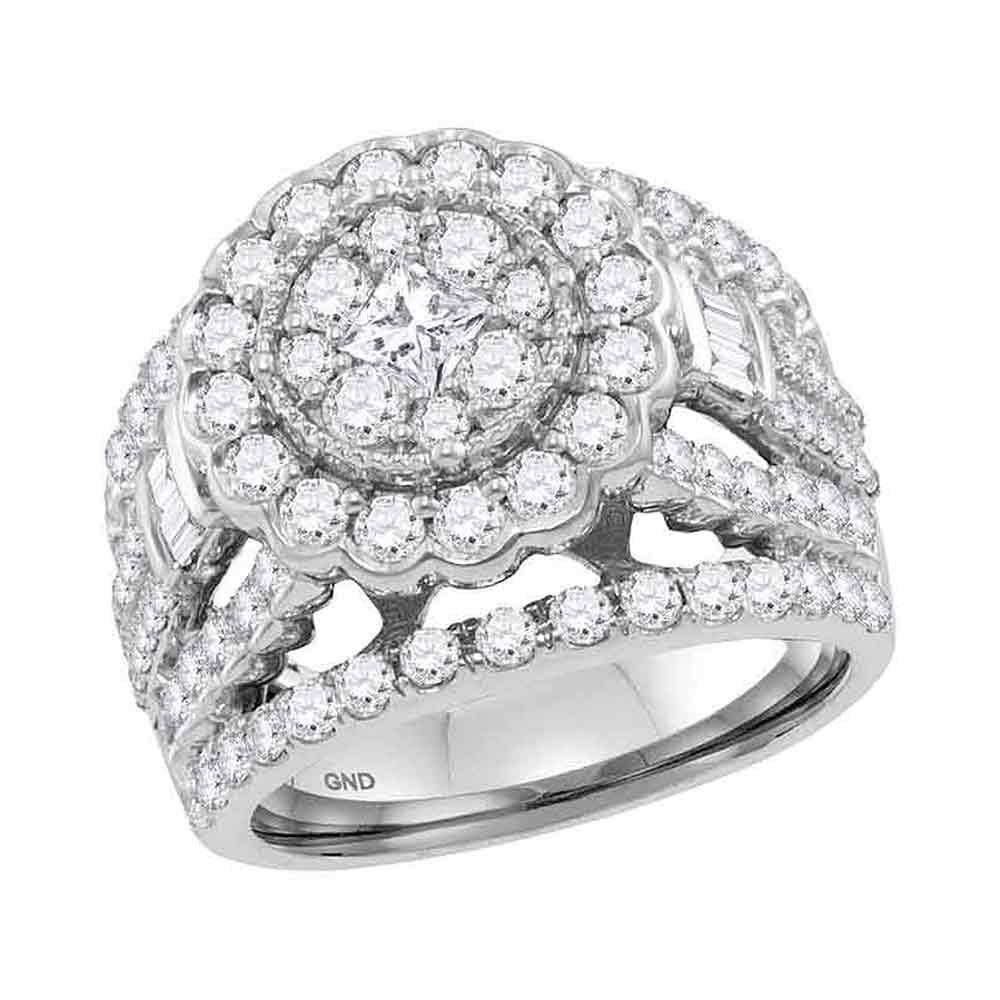 REF-269W9K- SKU: GD118363 ---- 2.99 CTW Princess Diamond Flower Cluster Bridal Ring 14KT White Gold