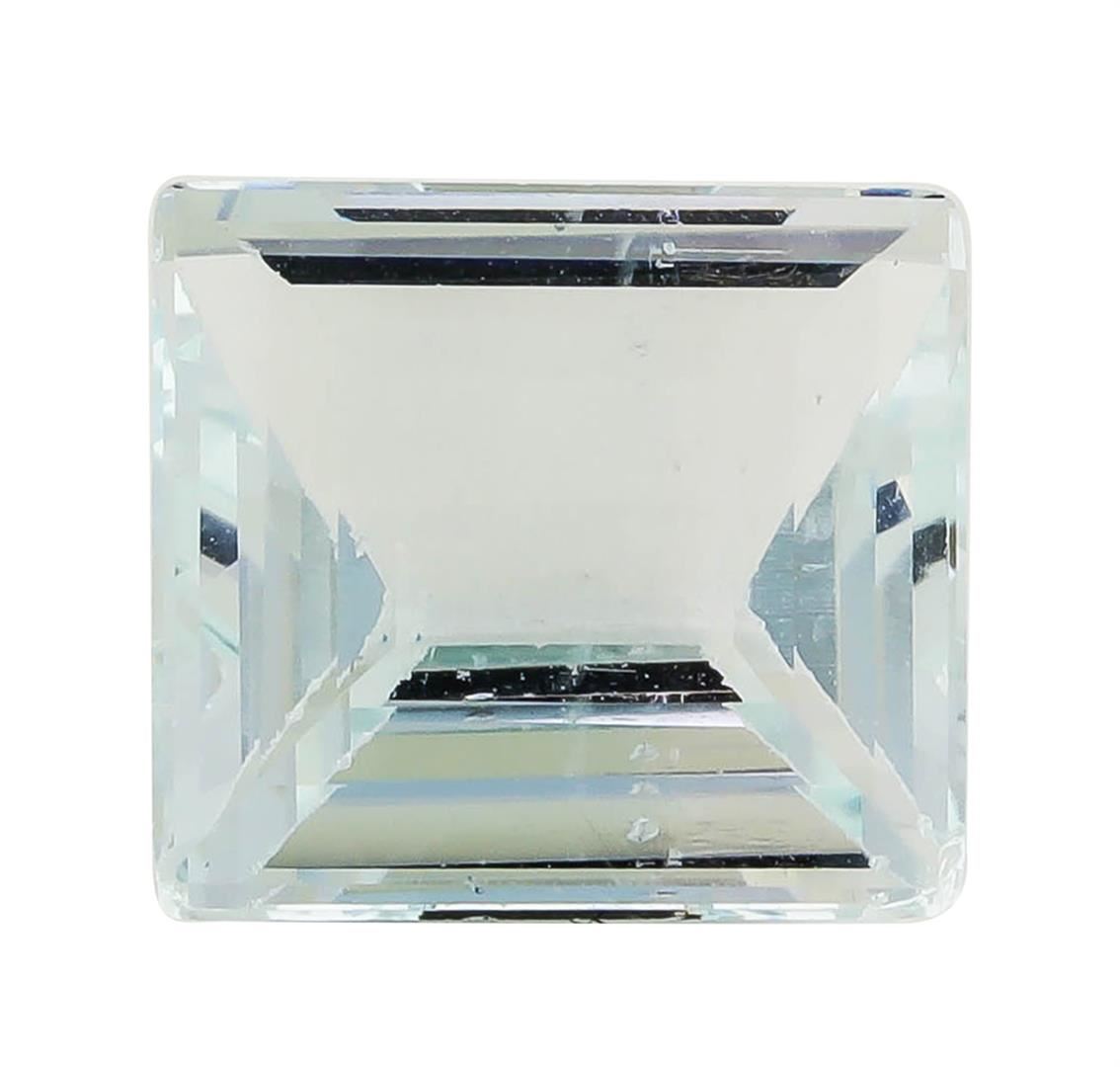 One natural square step cut aquamarine with an exact weight of 2.99ct., clarity is eye clean, slightly grayish greenish blue. Gemological Appraisals Services estimates the retail value at $1136.2 GAS Appraised.