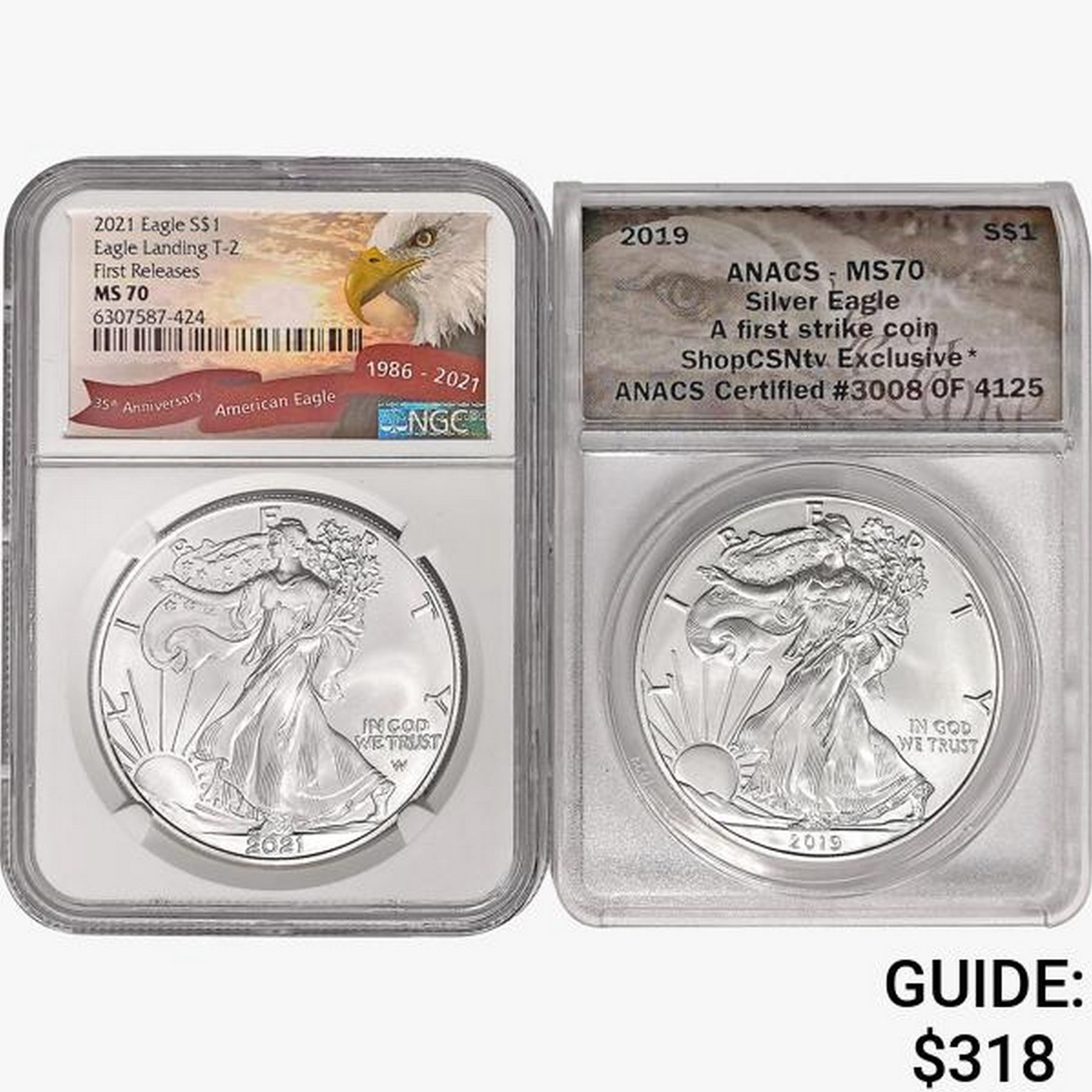 [2] A.S.E. INCLD. T-2 NGC,ANACS MS70 2019-2021
