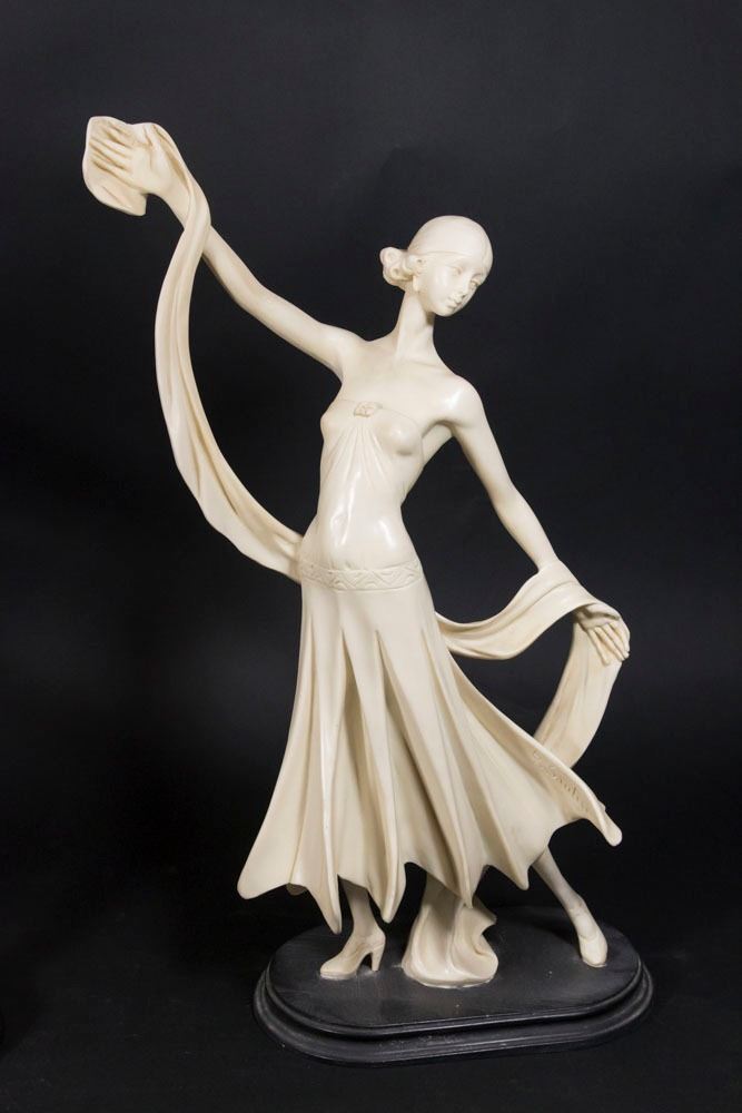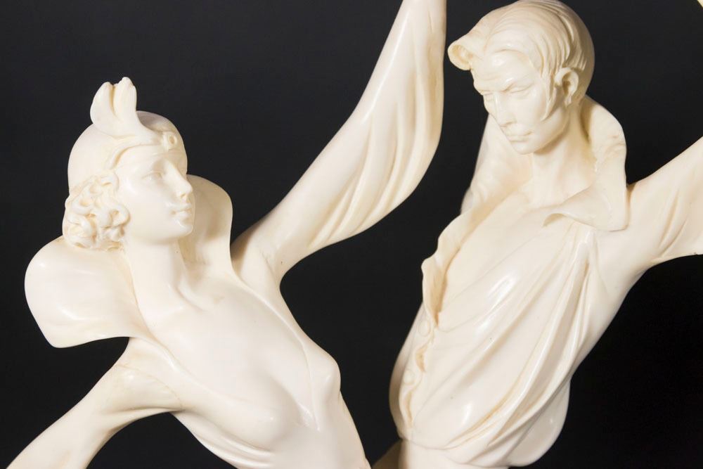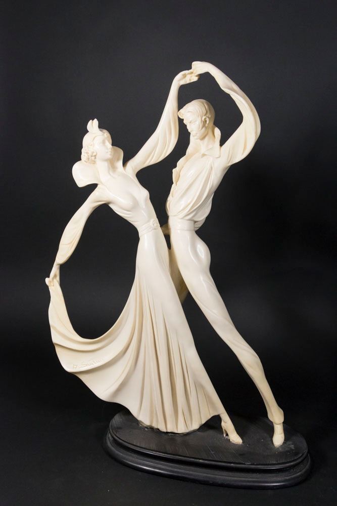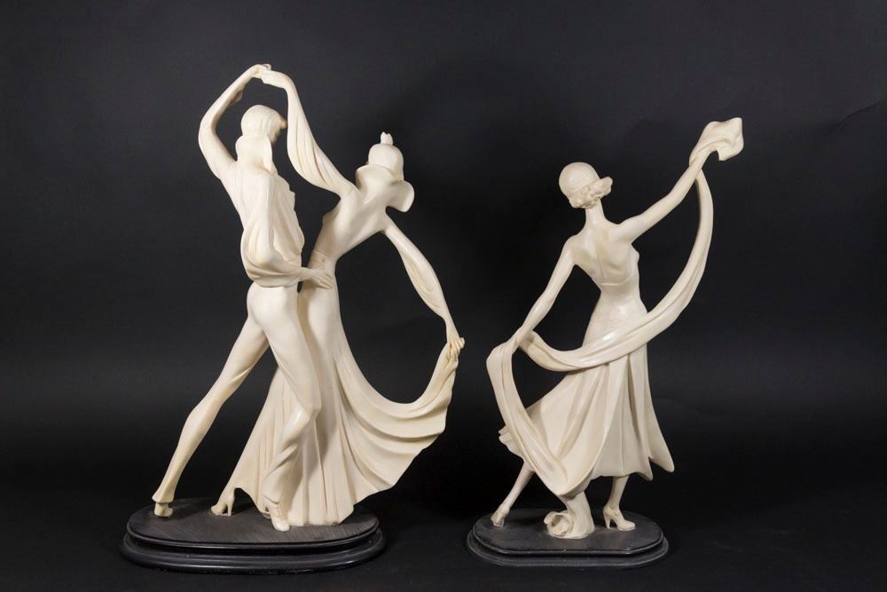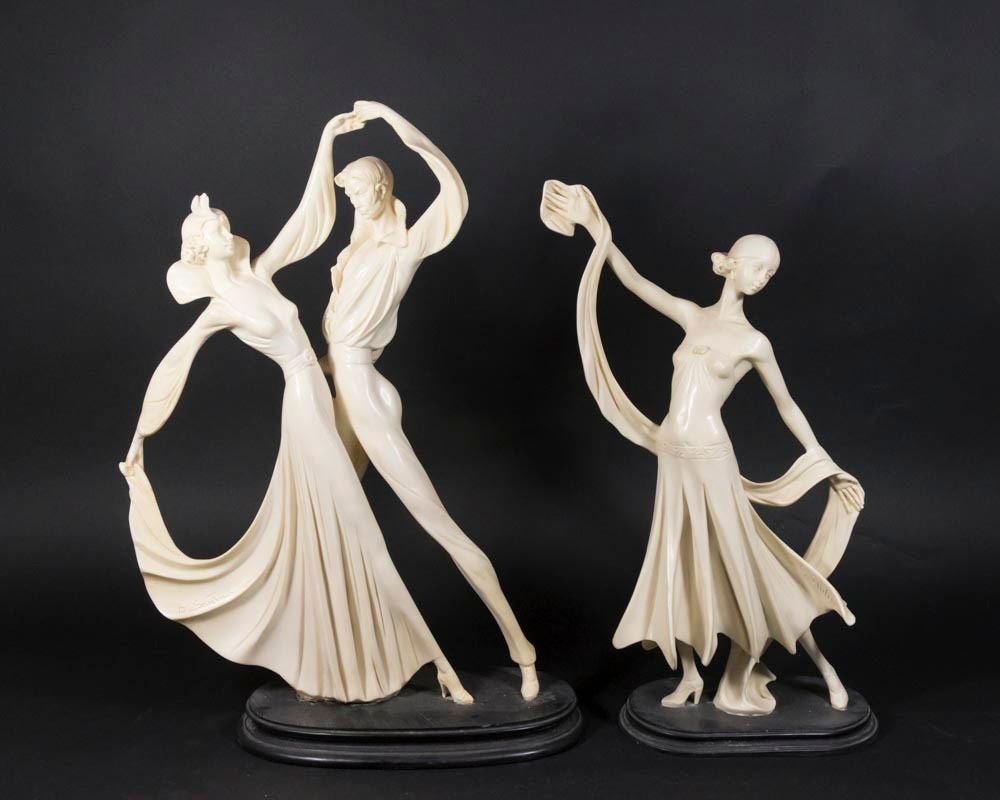 Dancers and single dancer on wood base. Approx. 18 1/2" H and 17" H. (6072)