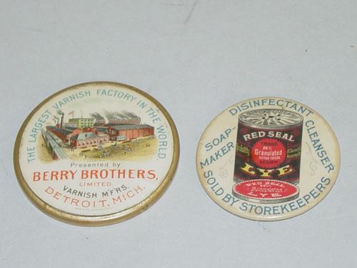 (2) ADVERTISING POCKET MIRRORS: (1) 1 3/4" RED SEAL LYE & (1) 2" BERRY BROTHERS VARNISH MFGRS.-DETROIT MICH.