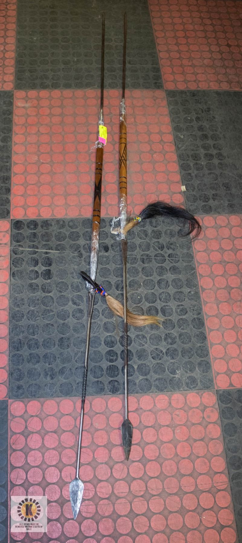 2 AFRICAN SPEARS:5 FT, W HAIR/LEATHER TIP COVERS