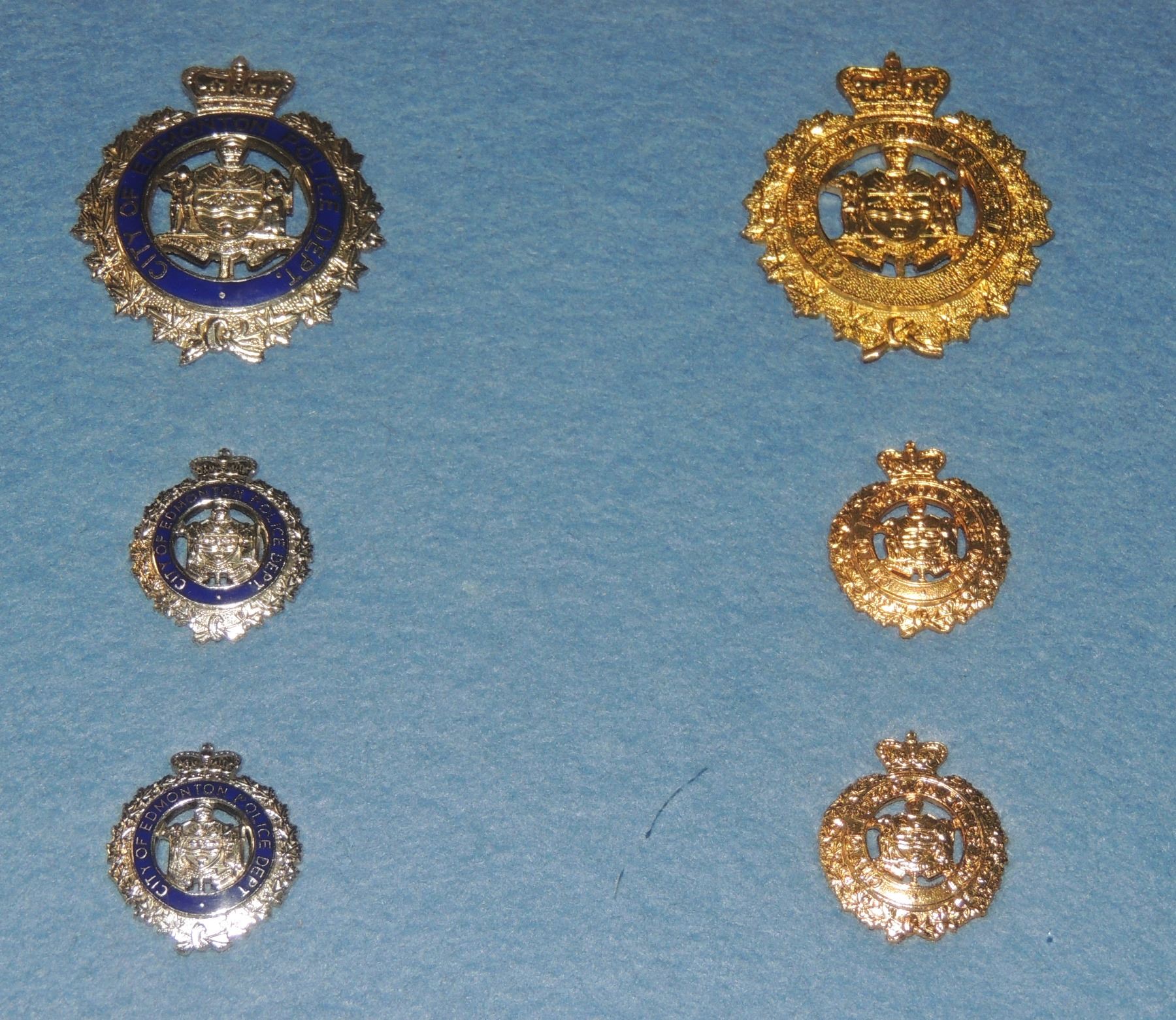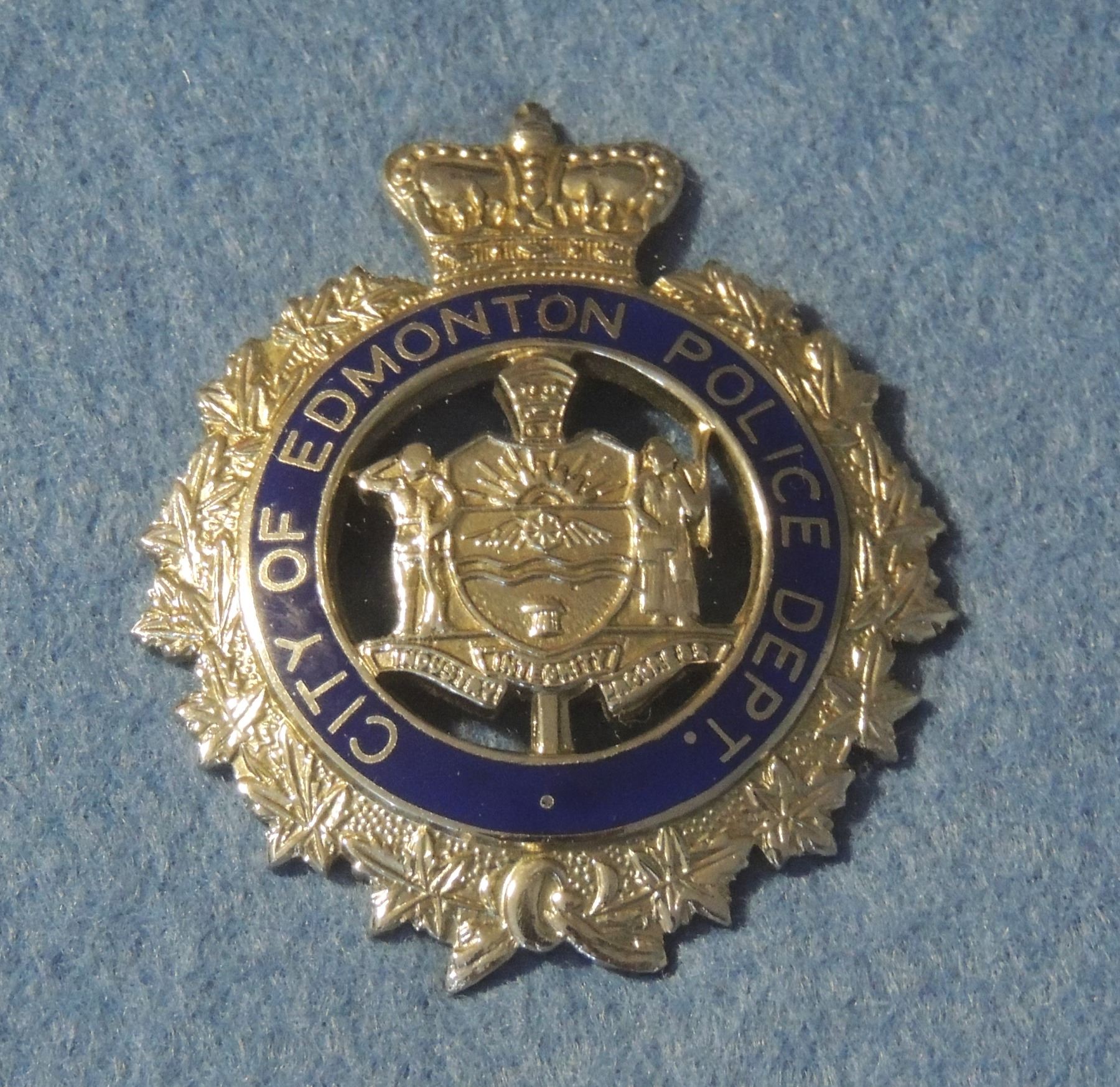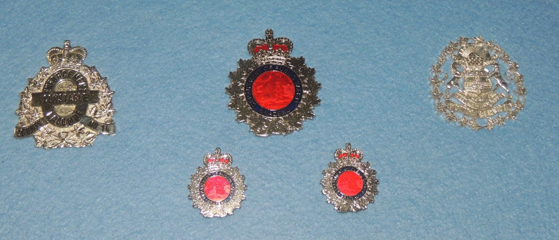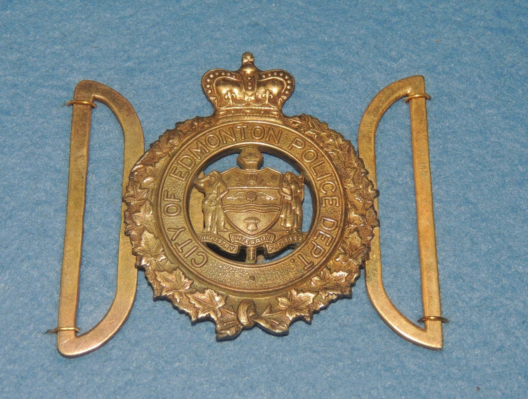 FRAMED CAP BADGE COLLAR SET INCLUDING CALGARY POLICE EDMONTON POLICE CAMROSE POLICE GRANDE PRAIRIE LACOMBE BRAZEAU INCLUDING BELT BUCKLES, RARE BADGE VARIATIONS AND MORE
