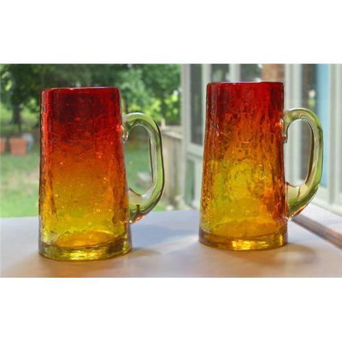 AFTER CHRISTMAS SALE SALE SALE SALE !!! FOR A LIMITED TIME, NO HANDLING FEES. SALE ENDS FEBRUARY 1, 2006. DON?T LET THIS ONE GET AWAY !!! ****** THIS WOULD MAKE A GREAT GIFT. I OFFER GIFT WRAP (let me know the occasion) FOR $5.00 AND CAN SHIP TO 3RD PARTY ADDRESS(ES) WITH PRIOR ARRANGEMENTS AND AFTER PAYMENT. ****** PLEASE TAKE A L@@K AT THIS SET OF TWO NEAR MINT CONDITION CLASSIC VINTAGE AMBER COLOR TO AMBERINA COLOR KANAWHA CRACKLE GLASS APARATIF GLASSES, OR SHOT GLASSES, OR MINI MUGS (WHATEVER YOU MAY CALL THEM) WITH CLEAR AMBER COLOR DROP-OVER HANDLES. Sturdy Enough for Everyday Use in Your Home, yet, these Truly Magnificent Works of Art that are Mouth-Blown and Hand-Made make great Art Pieces in your Window or in a Light Box. As far as I can ascertain, these Beautiful pieces of crackle glass have no checks, chips, cracks (other than its Crackle), repairs, or other damage, other than appropriate age wear on the bottoms. Kanawha Art Glass Crackle, in my opinion, is some of the most beautiful Crackle of all the West Virginia Crackle Glass Types. Kanawha Crackle is Small in Size and in the Sun it Explodes with Light that Makes the Piece Look Like it is Glowing! NO TWO PIECES OF HAND-MADE, MOUTH-BLOWN GLASS ARE EXACTLY ALIKE. VARIATIONS IN COLOR DISTRIBUTION, BUBBLES IN THE GLASS, AND OTHER DISTINCTIVE BLOWN-GLASS CHARACTERISTICS ARE NORMAL, AND ARE CONSIDERED A PART OF THE CHARM OF BLOWN GLASS. THESE VARIATIONS ARE NOT FLAWS, THE SAME HOLDS TRUE OF CRACKLE GLASS. IF YOU HAVE ...