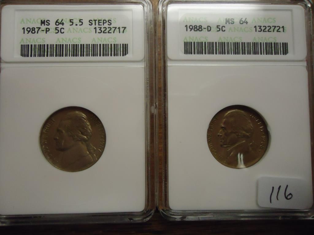 1988-D MS64 AND 1987-P MS64 5 1/2 STEPS