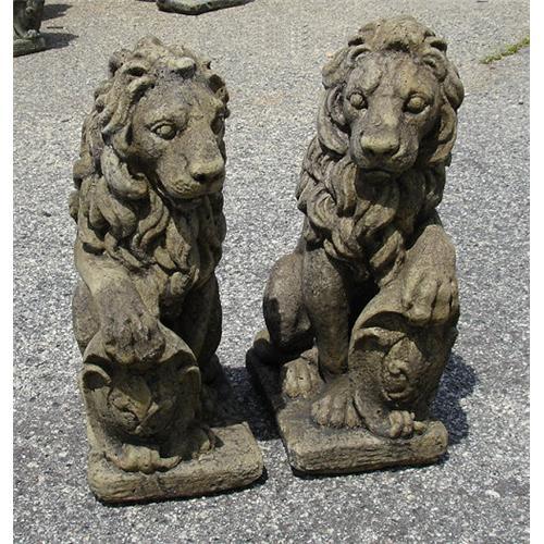 <tr><td>Title:2 ANTIQUE ARCHITECTURAL LION GARDEN STATUARY</td></tr>