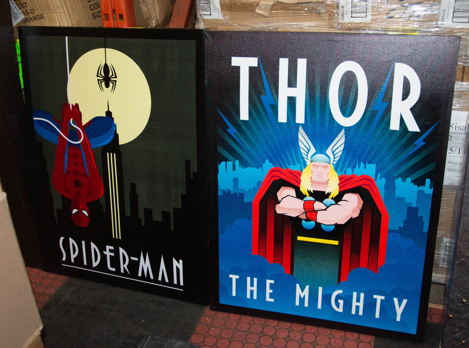 2 ART PIECES SPIDER-MAN AND THOR 32  X 24