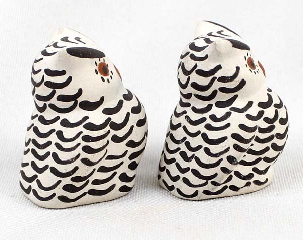 2 Native American Acoma Hand Painted Ceramic Pottery Owls, measure 1.5''H x 1.25''W