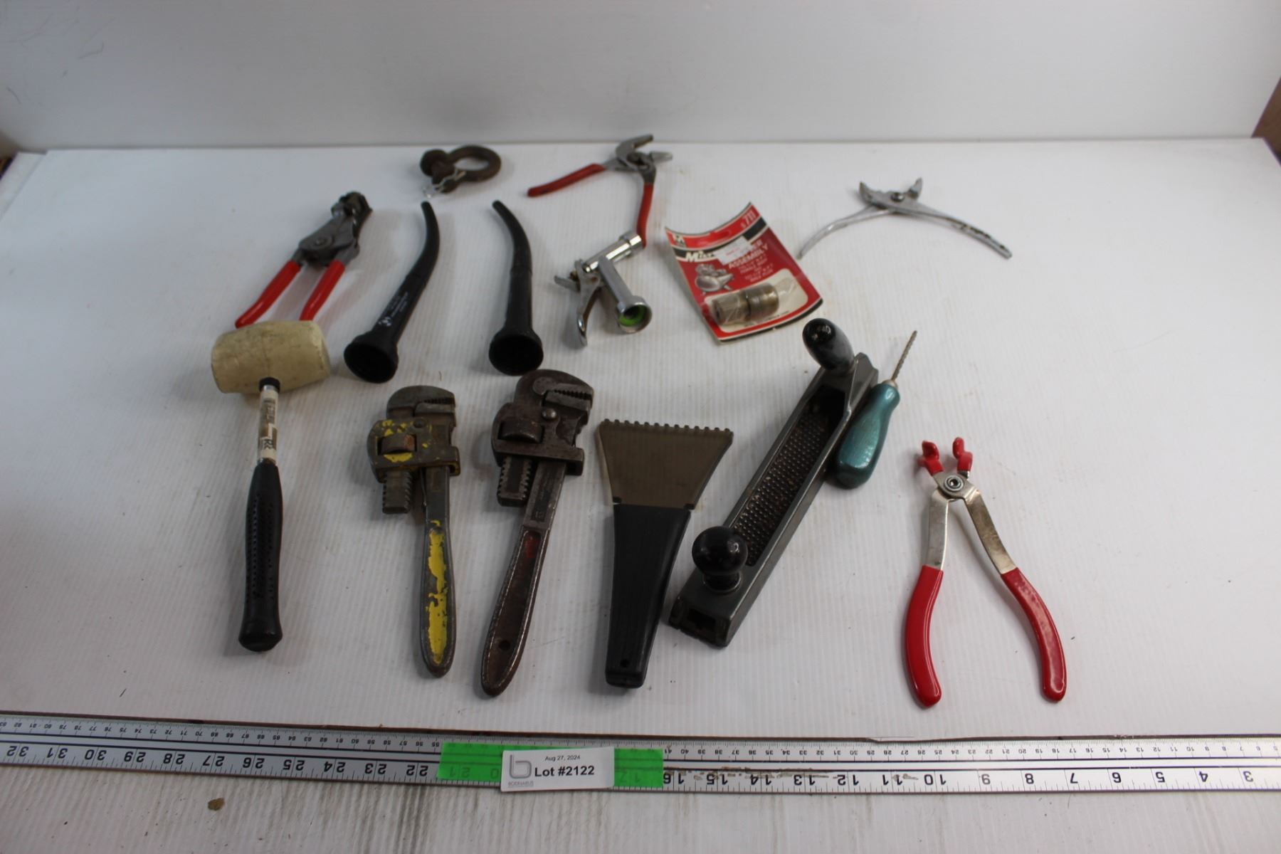 (2) Adjustable Wrenches, Hammer, Bench Hand Plane and Assorted Items