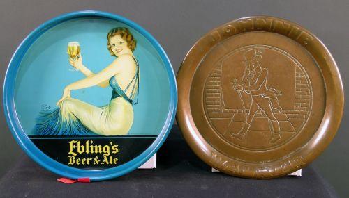 Two Advertising Serving Trays Ebling's Beer and Johnnie Walker Whiskey