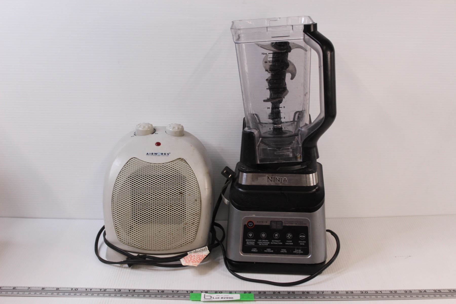 (2) Airworks Small Space Heater - Working; Ninja 9 Cups Food Processor - Untested