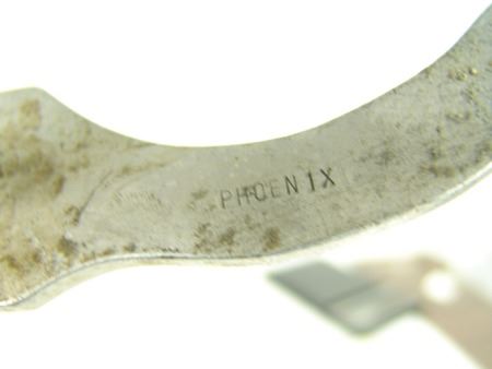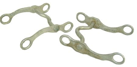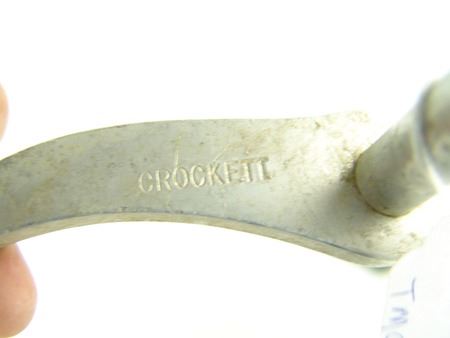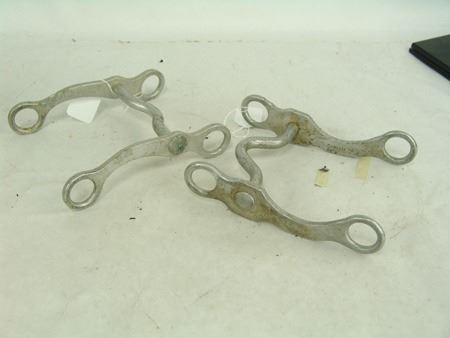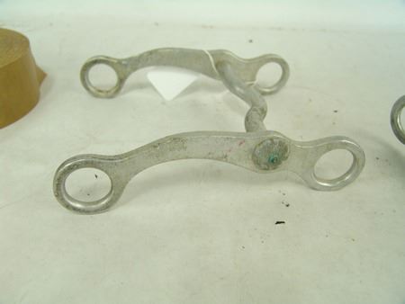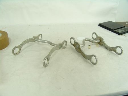 Mid 1900s, Pair of 5" long shank aluminum western bits, one marked "Crockett" on the inside, the other "Phoenix." Good condition, minor oxidation. 8" x 6"