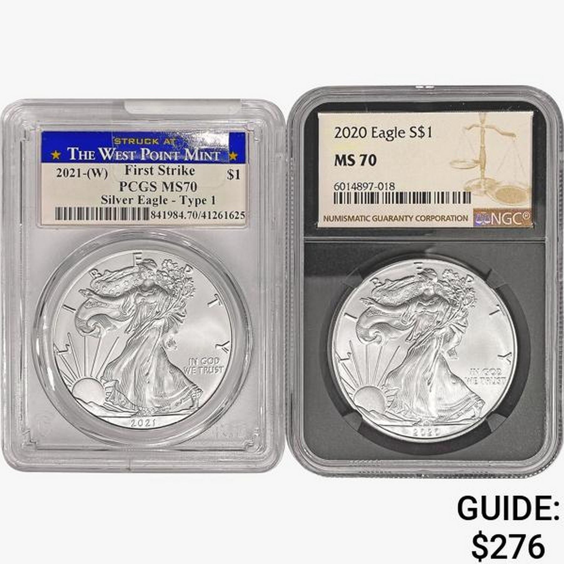 [2] American 1oz SILV Eagles PCGS/NGC MS70 1st Str