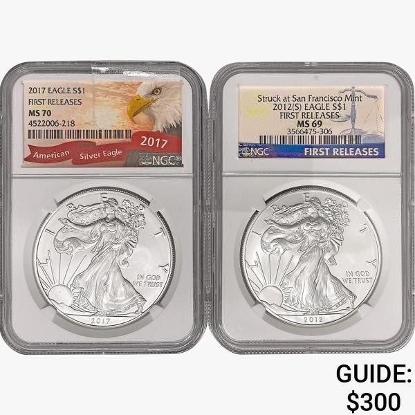 [2] American 1oz Silver Eagles NGC MS69/70 1st Iss