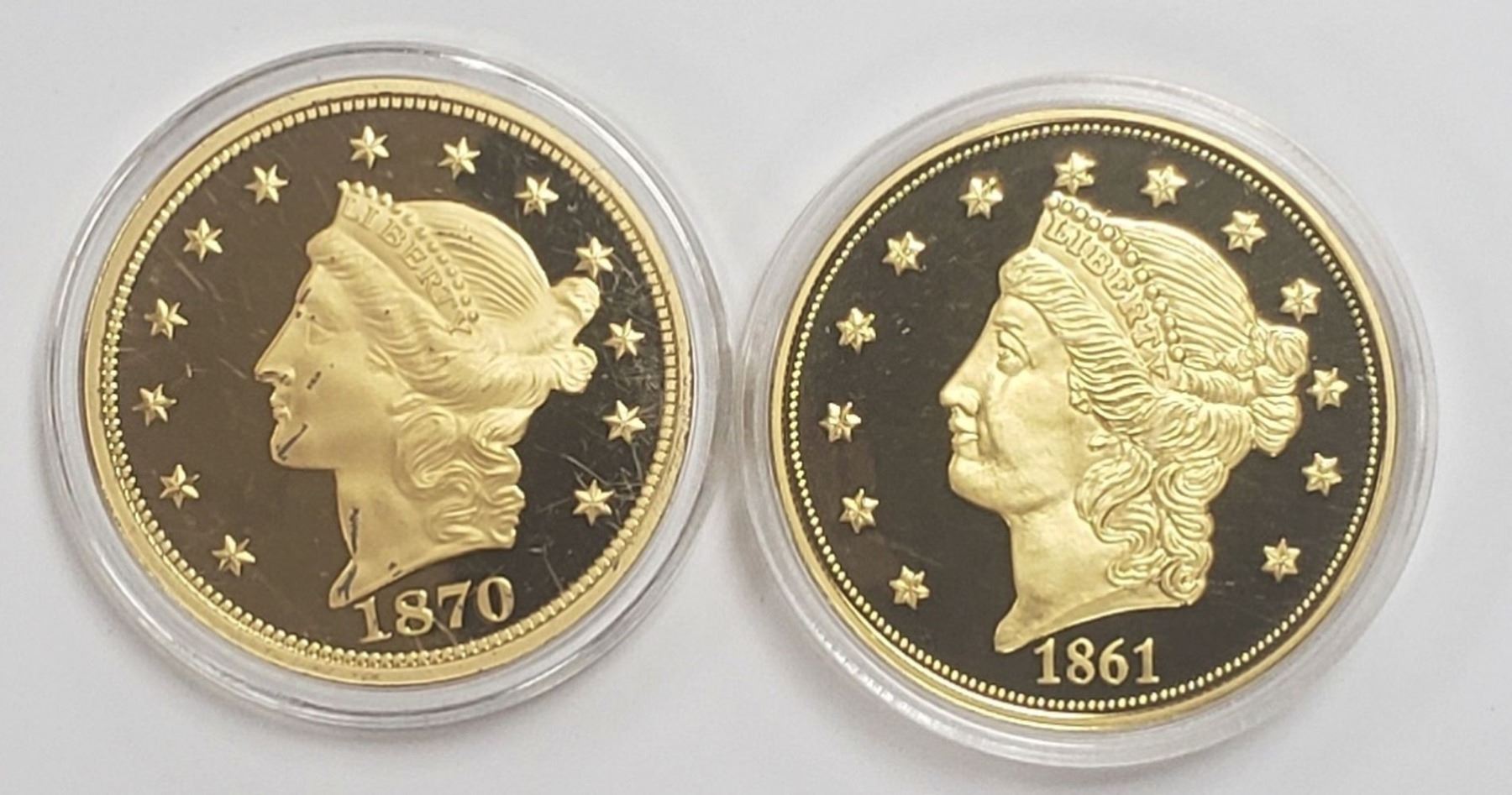 1861-CC & 1870-O $20 Liberty Copy (1 with COA)