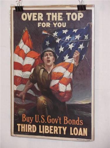 2 American WWI Posters, "Over the Top for You etc. Third Liberty Loan", Artist-Sidney H. Riesenberg, Printer-Ketterlinus-Phila., 30" x 20", Condition – Good: Border Tears (Up to 1 1/2"), Corner and Compression Creases, Wrinkling, Soiling,