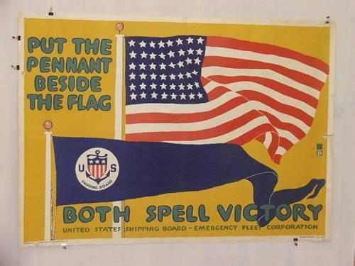 2 American WWI Posters, "Put the Pennant Beside the Flag Both Spell Victory (Untied States Shipping Board)", Artist-Not Provided, Printer-Carey Print Lith-NY, 40" x 56", Condition – Poor/Fair: Deep Penetrating Tears (Up to 10"), Other Border Tears and Losses, Corner and Folding Creases, Corner Losses,