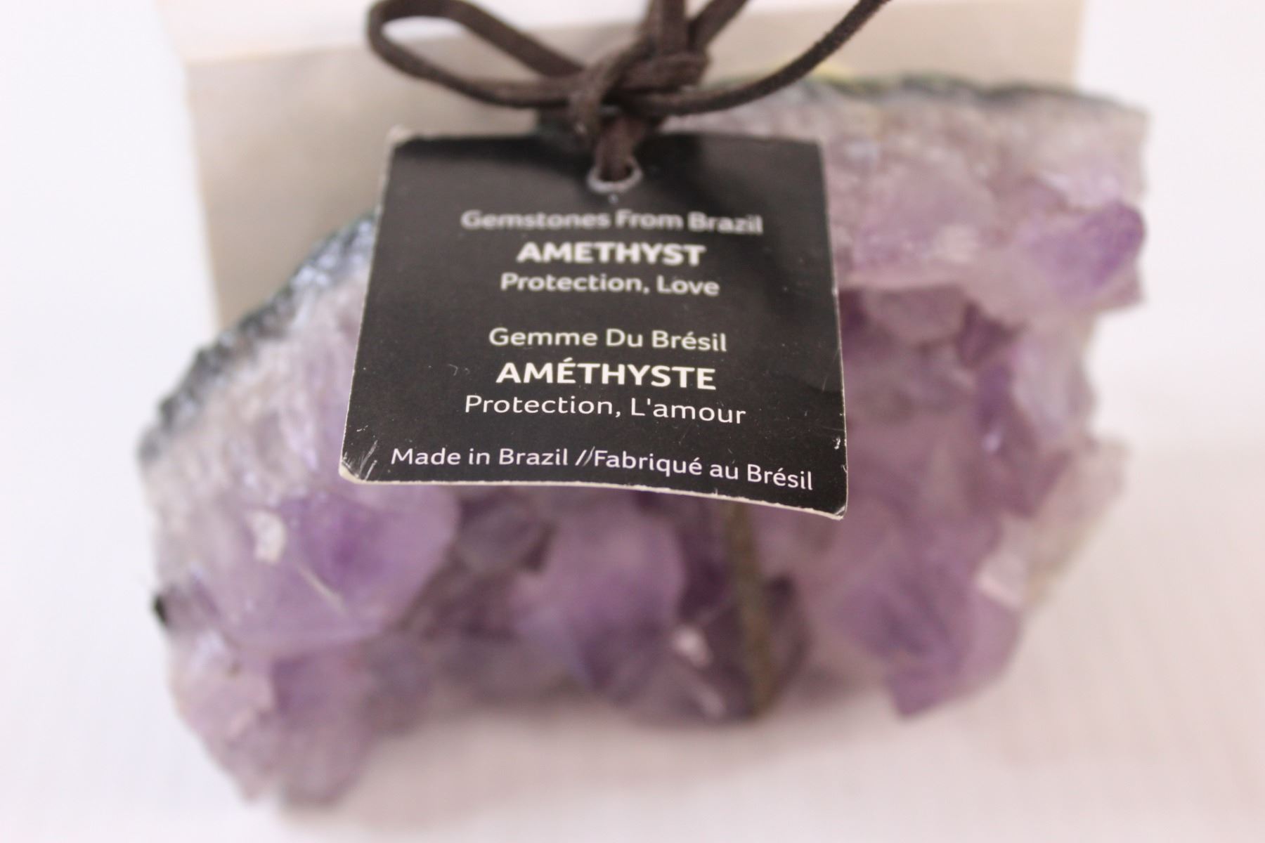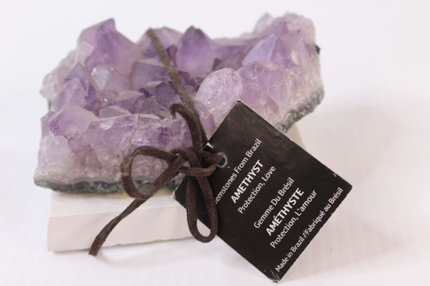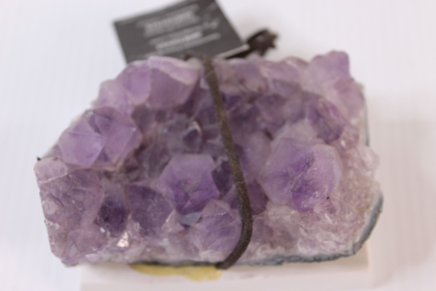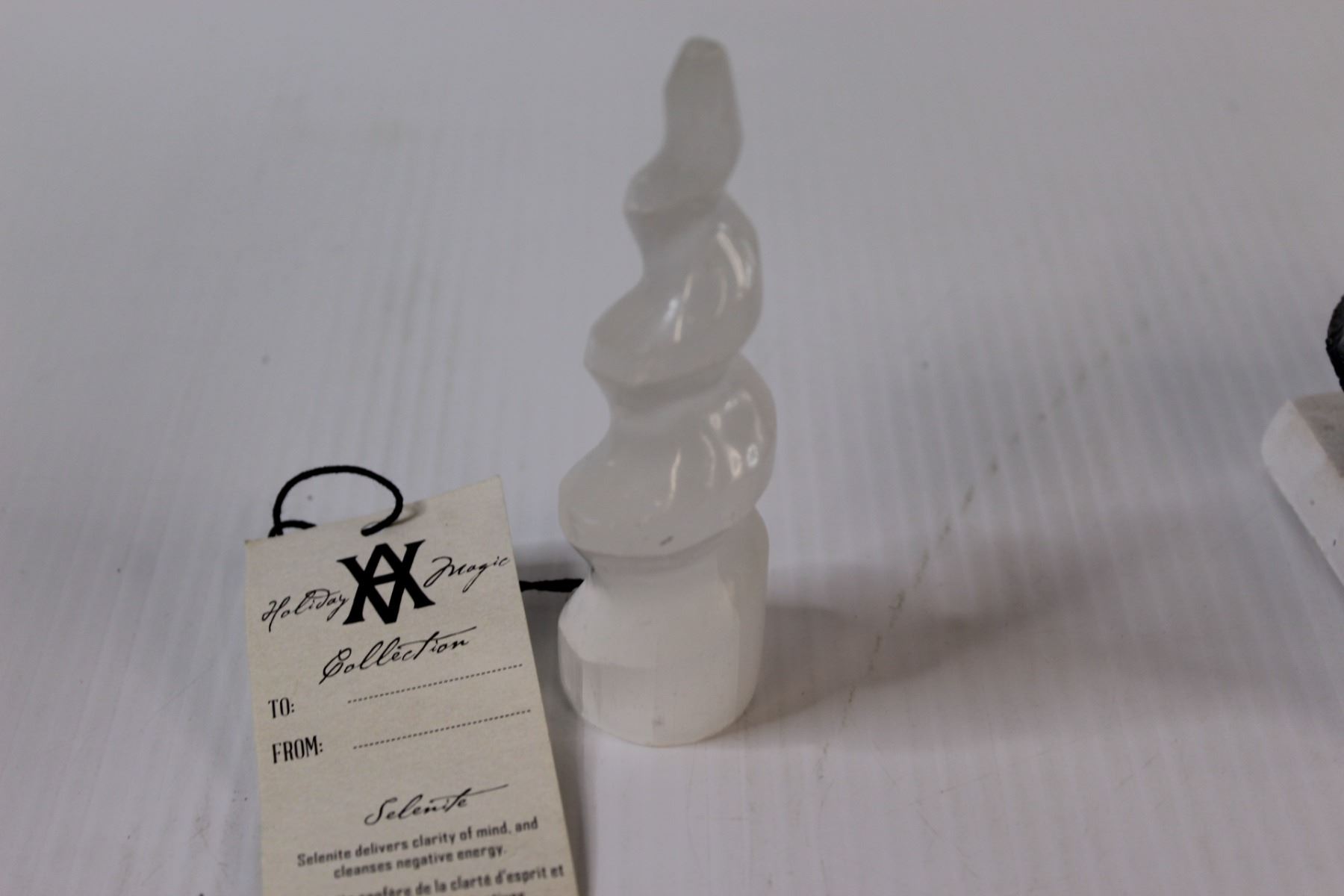 (2) Amethyst Agate mounted on wood base; Carved Spiral Moroccan Selenite