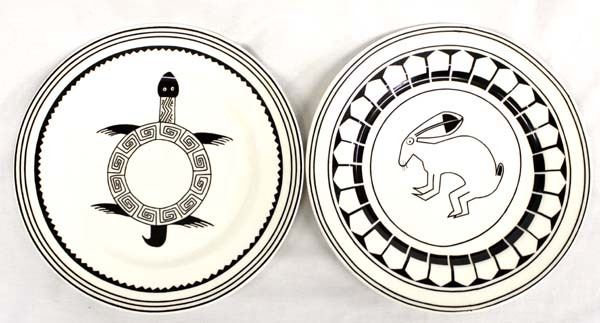 2 Anasazi Traders Ceramic Decorative Plates, measures 11''D, Mimbres Designs, Turtle and Rabbit, for decorative use only