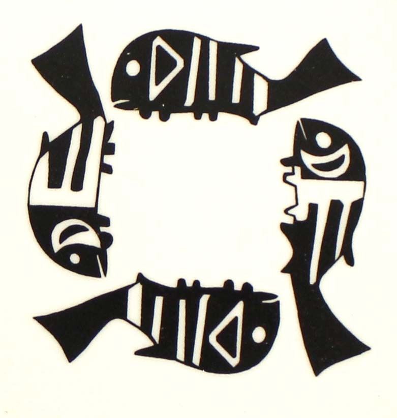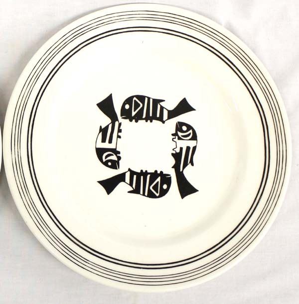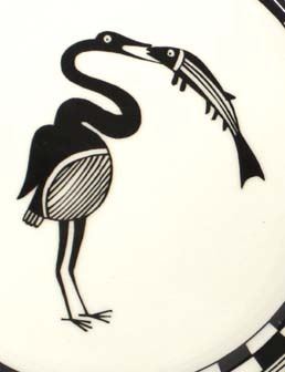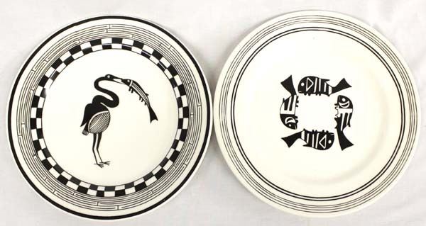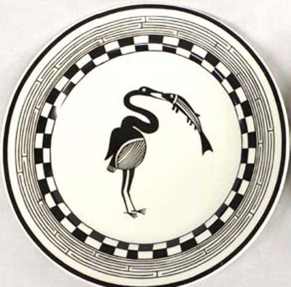 2 Anasazi Traders Ceramic Decorative Plates, measures 11''D, Mimbres Designs, Crane Eating Fish and 4 Fish, for decorative use only