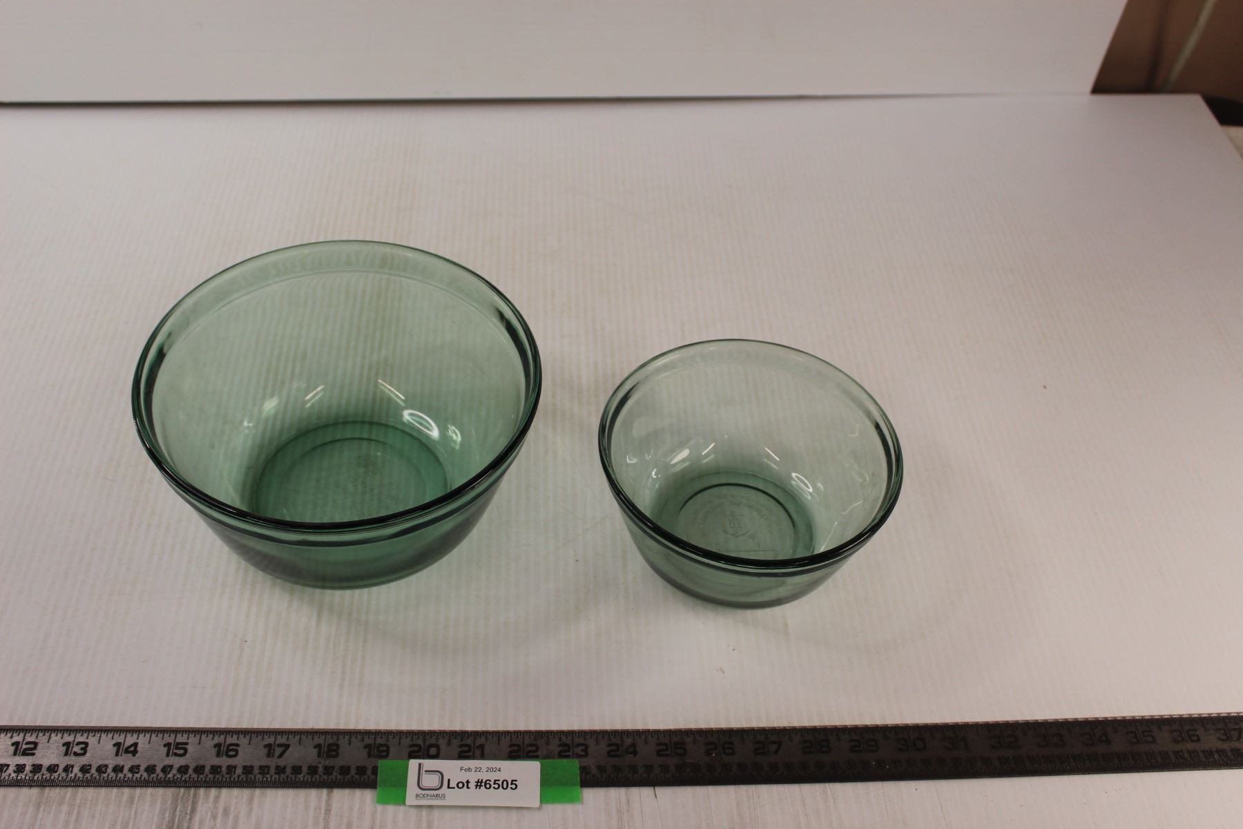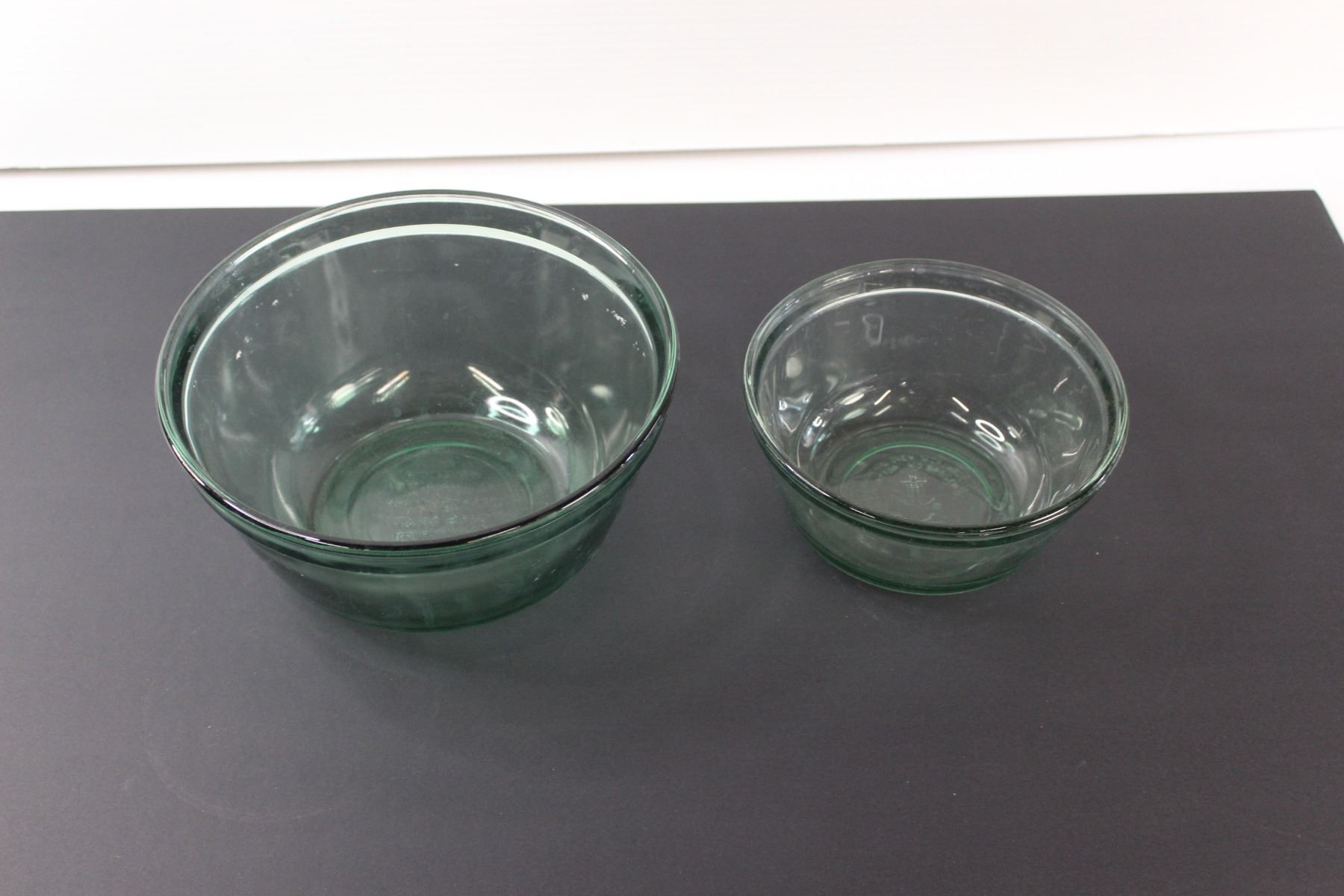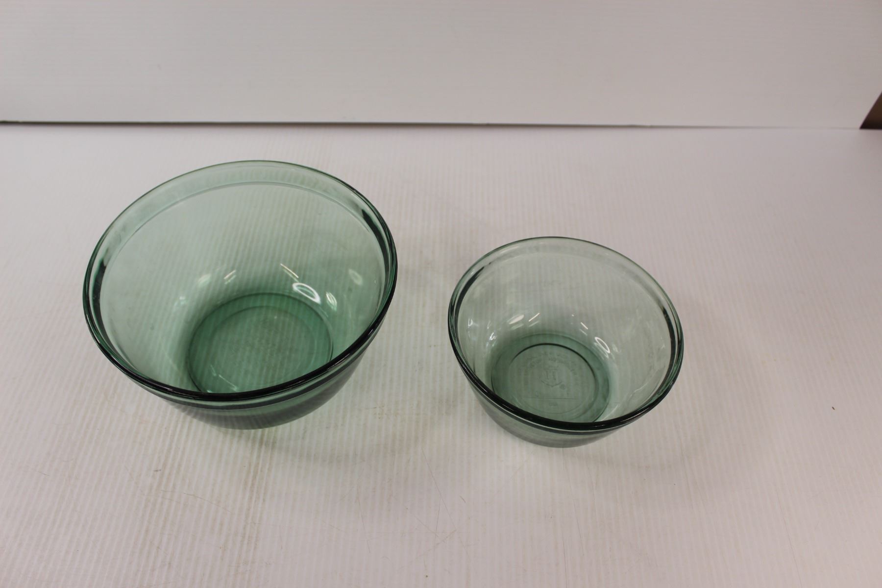 (2) Anchor Green Glass Mixing Bowls - 2.5L & 1L