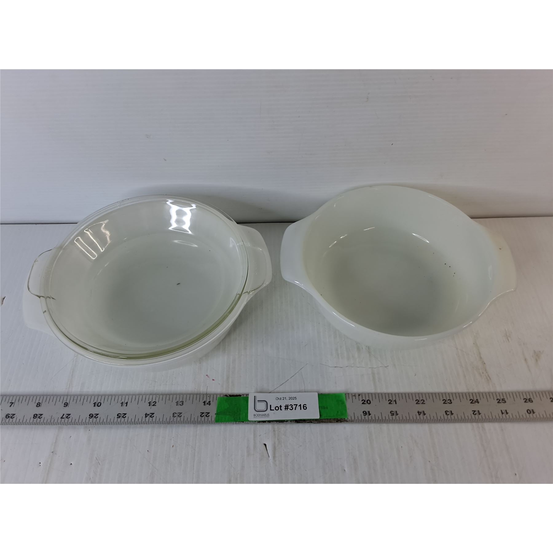(2) Anchor Hocking Bowls 9  No Pattern, (1) Lid