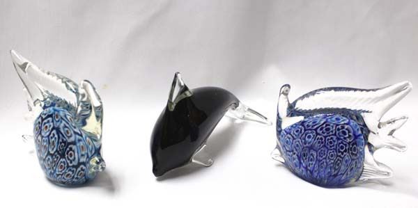 2 Angelfish and 1 StealStreet Dolphin Glass Paperweights, largest measures 4'' x 5'', the dolphin has a foil label marked ''Hand-Crafted UG Collectible''