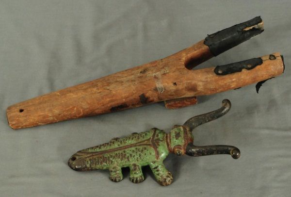 Cast iron boot jack measures 10-1/2" long. Wood boot jack measures 18" long.