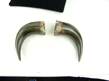 Mid 1900s, Pair of polished and prepped young buffalo horns ready for mounting or carving. 11-1/2"