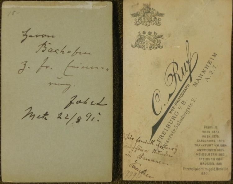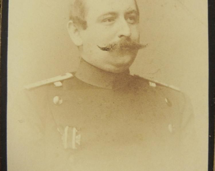 Here are two 19th century Carte de Visite photographic military portraits. One depicts a high ranking German military official, and the other a German soldier. The size of the photos is standard, 2 1/2 x 4 inches. One is in very good condition with a rip near the top, and the other is in good condition with a crease mark at the corner. The reverse side of the German soldier has the name of the studio, C. Ruff, from Freiburg Germany. At the bottom of the high ranking German military officer photo has the name of the studio, B. Munchs HOF-Photograph, from Gotha Germany. There is a note written in German on the back of each photo.