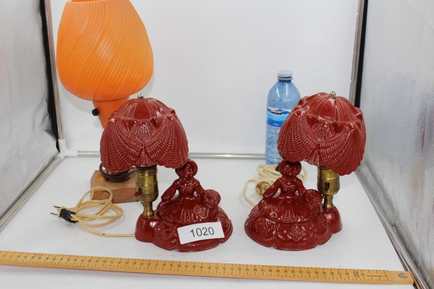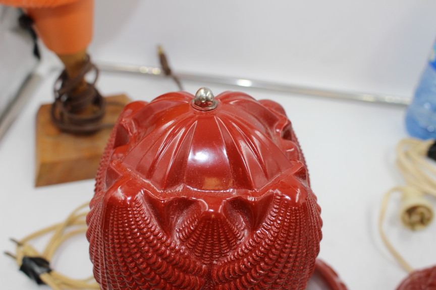 Dish (1 is damaged, see pictures) Orange MCM Table Lamp