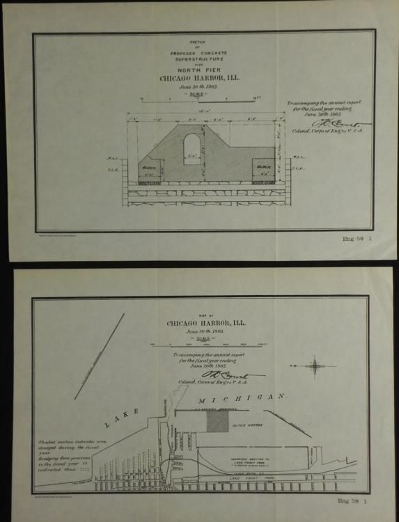 2 Antique Chicago Survey Maps, Sketches Harbor CCE 1903