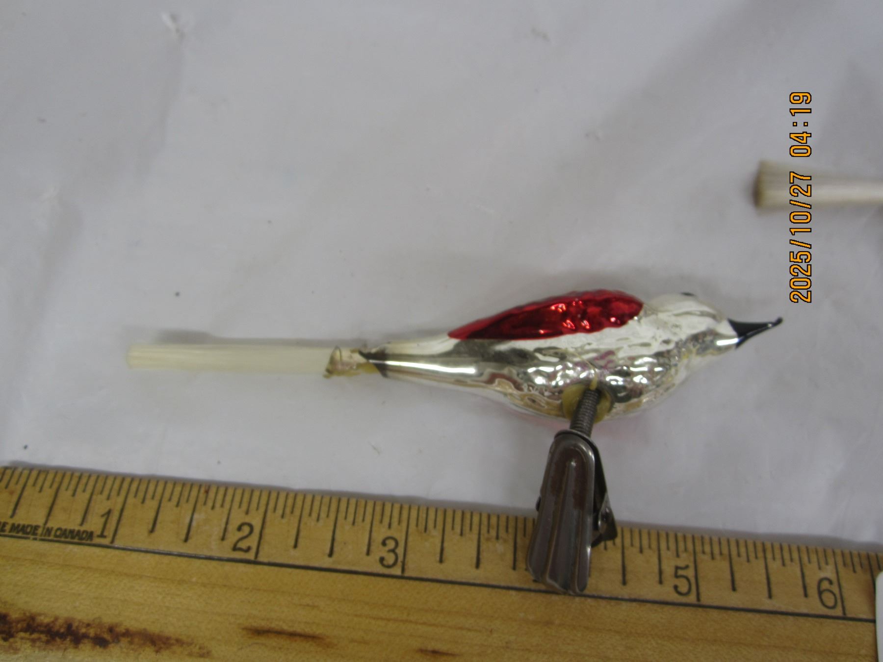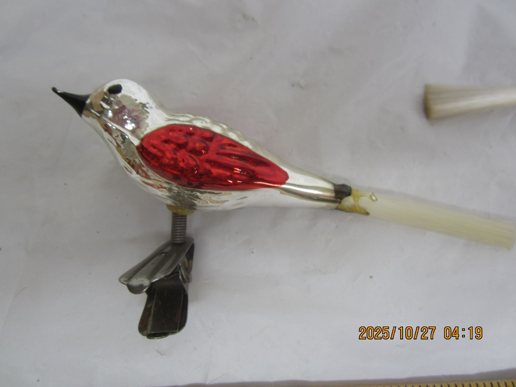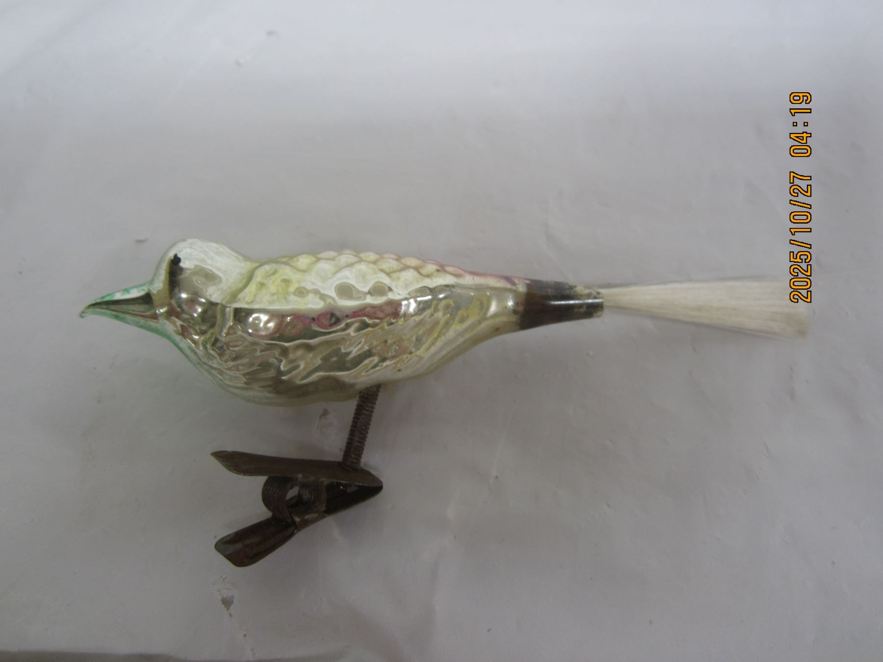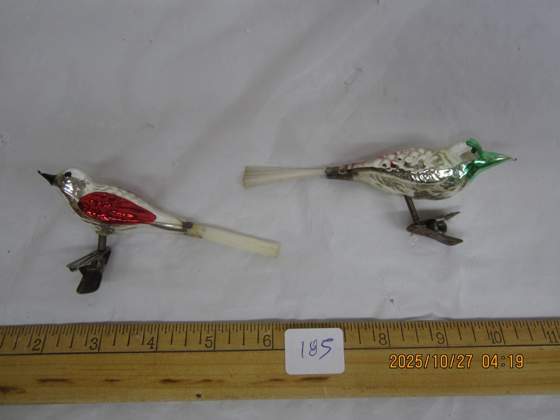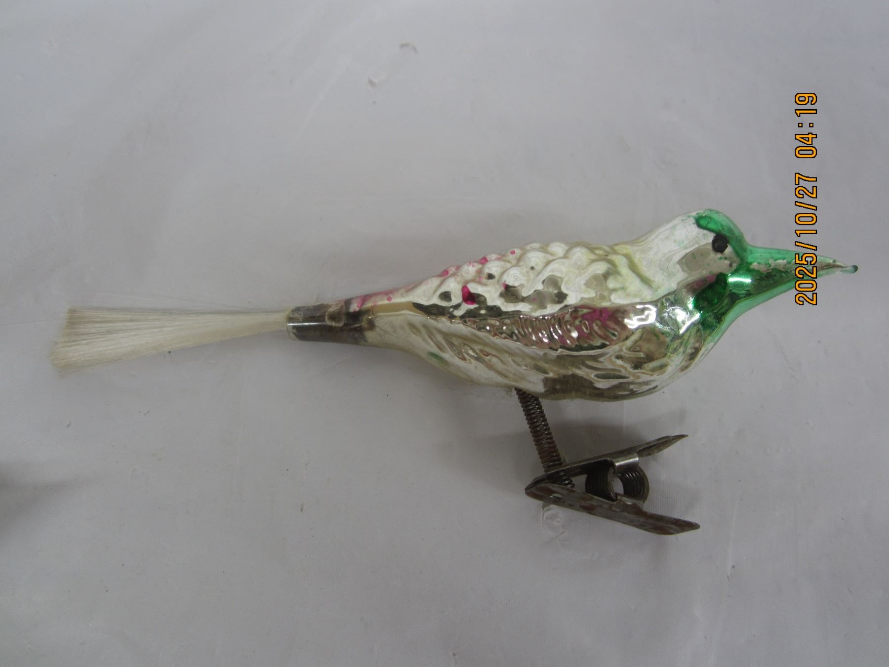 2 Antique Clip On Glass Birds Christmas Decorations with Tails