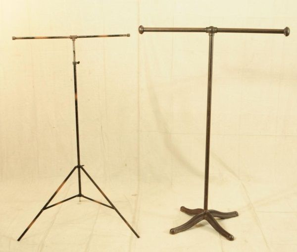 One cast iron, 1 adjustable tripod. Cast iron measures 35" wide x 50" tall. Tripod measures 28" wide x 42"-75" tall.