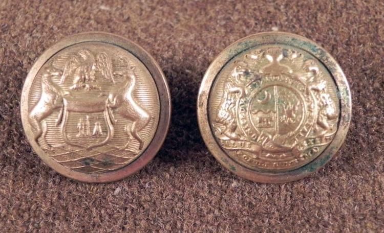 2 Antique Gilt Buttons Civil War Michigan, Missouri