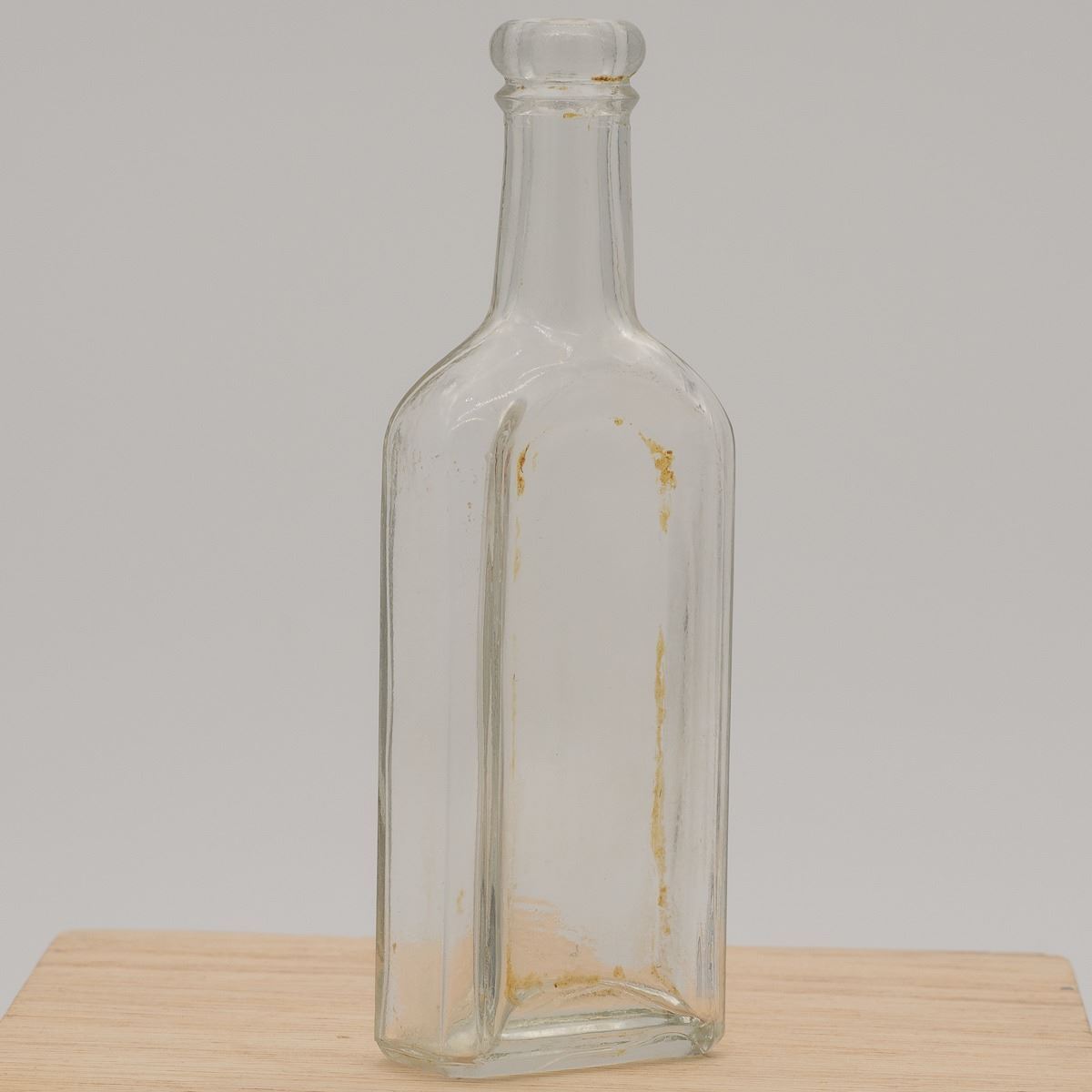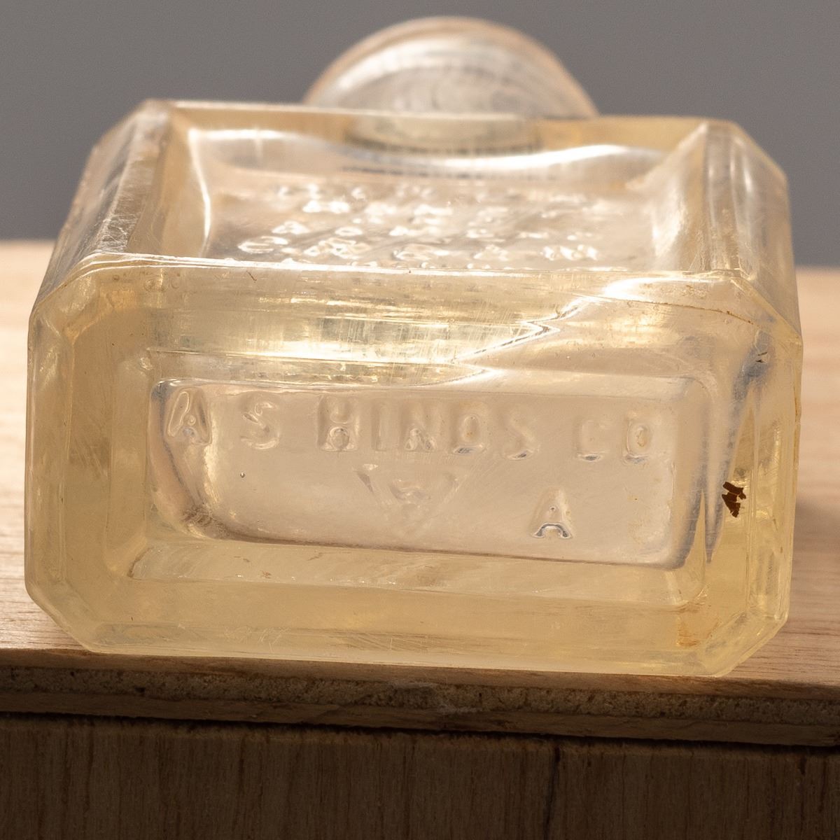 2 Antique Glass Bottles, largest measures 5"H x 1.5"W and is possibly an old Castoria bottle, the small one is embossed "Hinds Honey and Almond Cream A. S. Hinds Co. Bloomfield NJ U.S.A.