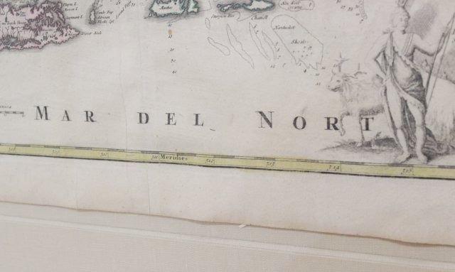 One hand-colored engraving Hambourg? J. Covens & C. Mortier, approx. 18" H x 22" W sight, 24" H x 27" W framed. One hand-colored engraving, "Nova Anglia." Johann B. Homann, approx. 21" H x 25" W sight, 31" H x 35" W framed.