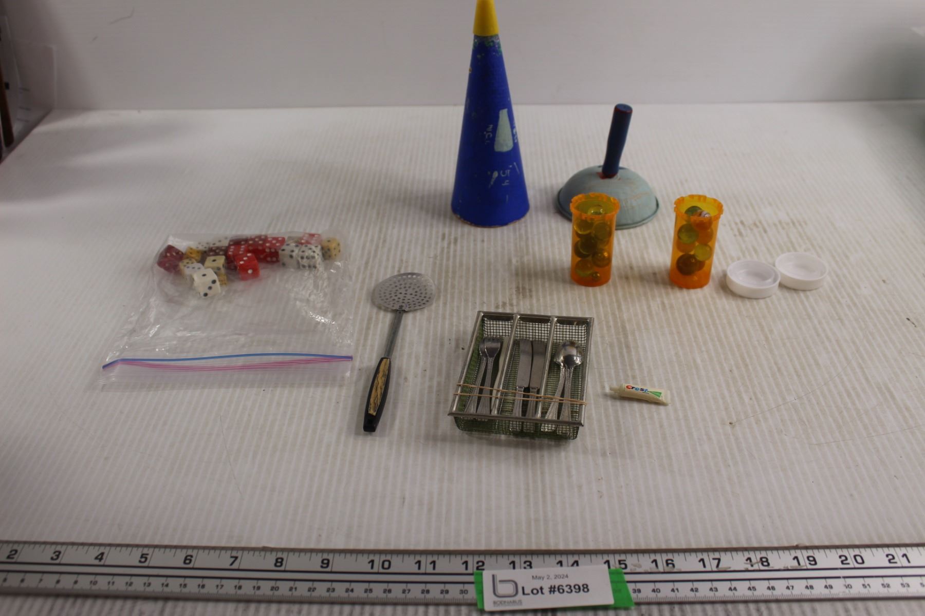 (2) Antique Noise Makers, Mini Utensils, Misc.