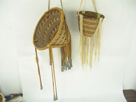 Various Ages, Pair of traditional burden baskets, the larger circa 1980s, the smaller a much finer version and with beautiful patina from the 1930s. Both in very good condition. Largest 11-1/2" diam