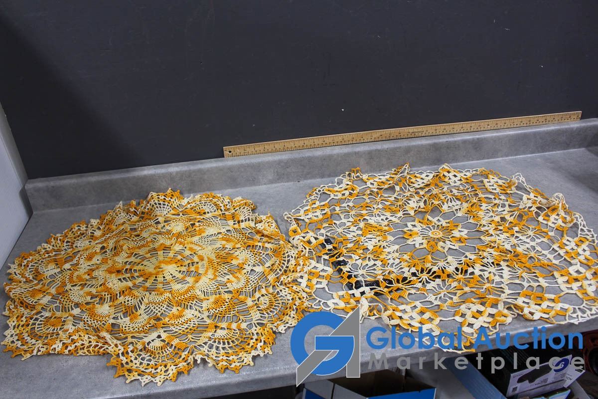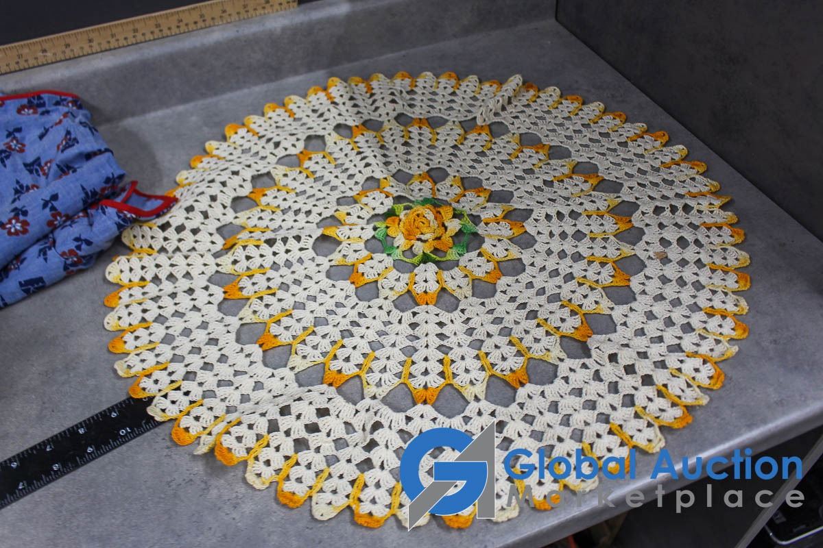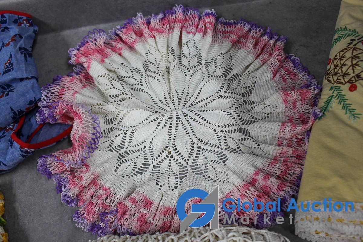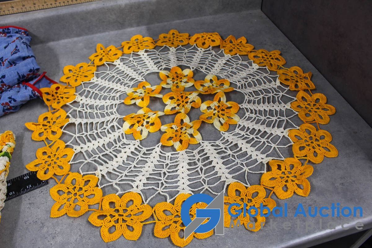 (2) Aprons and Crocheted Dollies/Table Runners