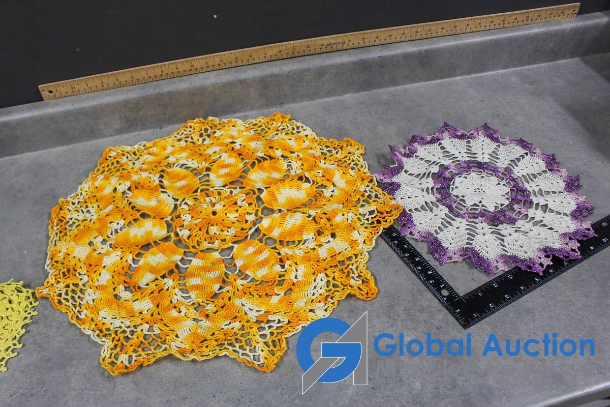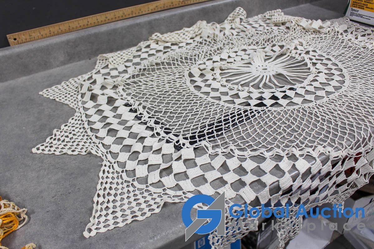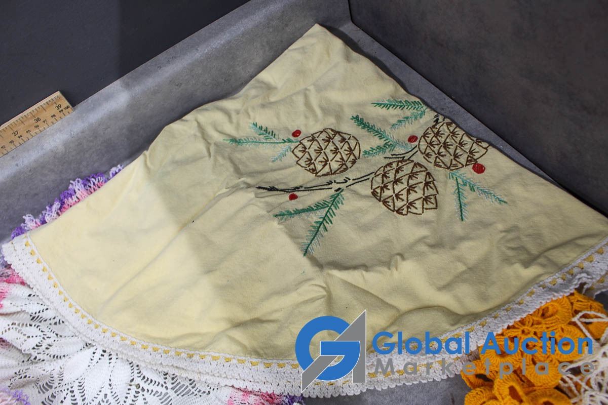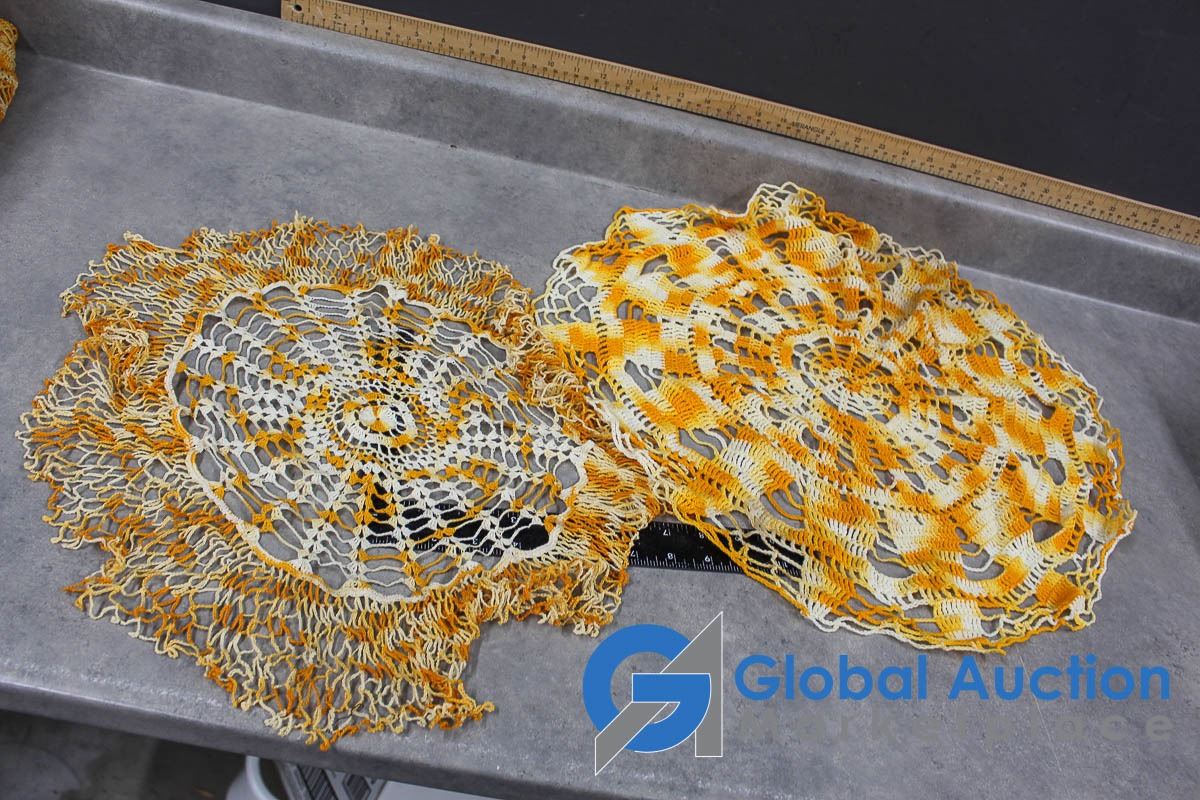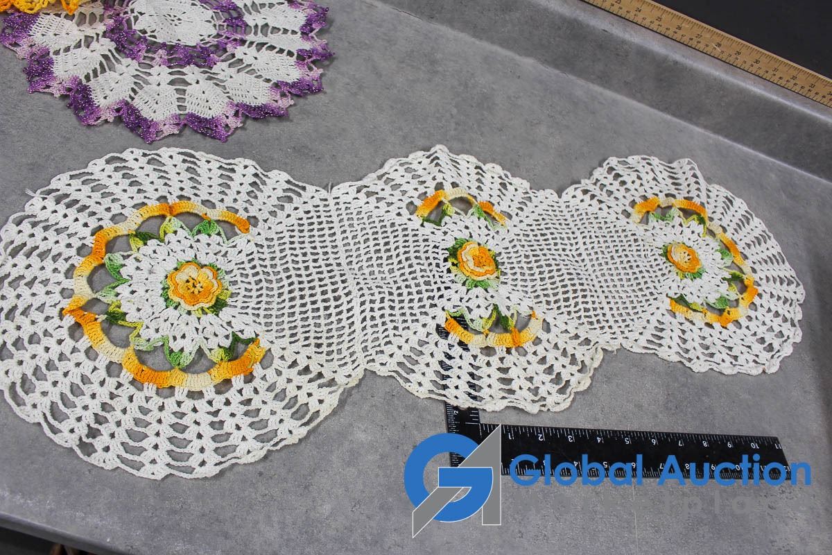(2) Aprons and Crocheted Dollies/Table Runners