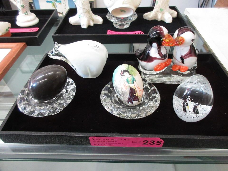 2 Stone eggs & 1 heirloom collectible glass egg.