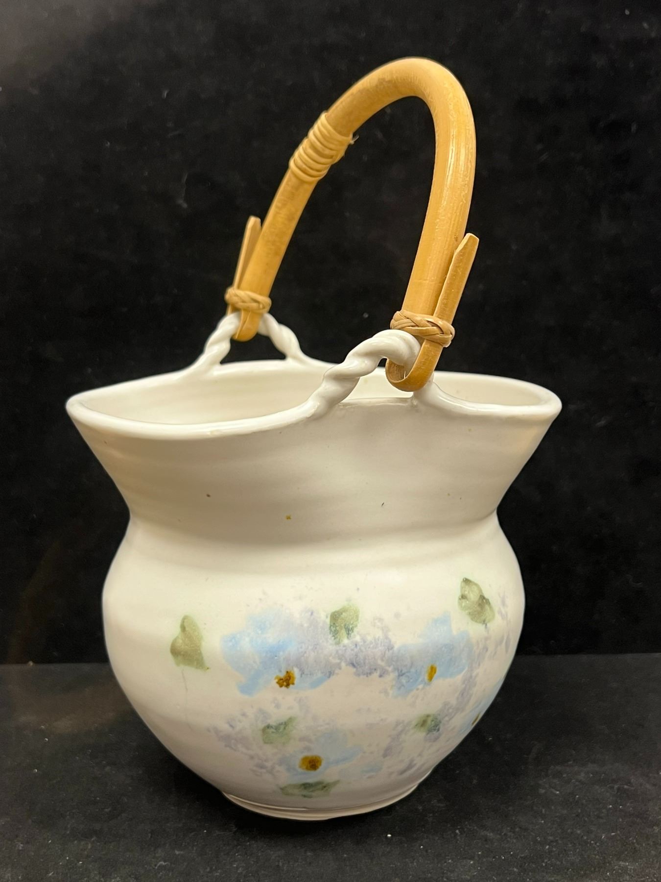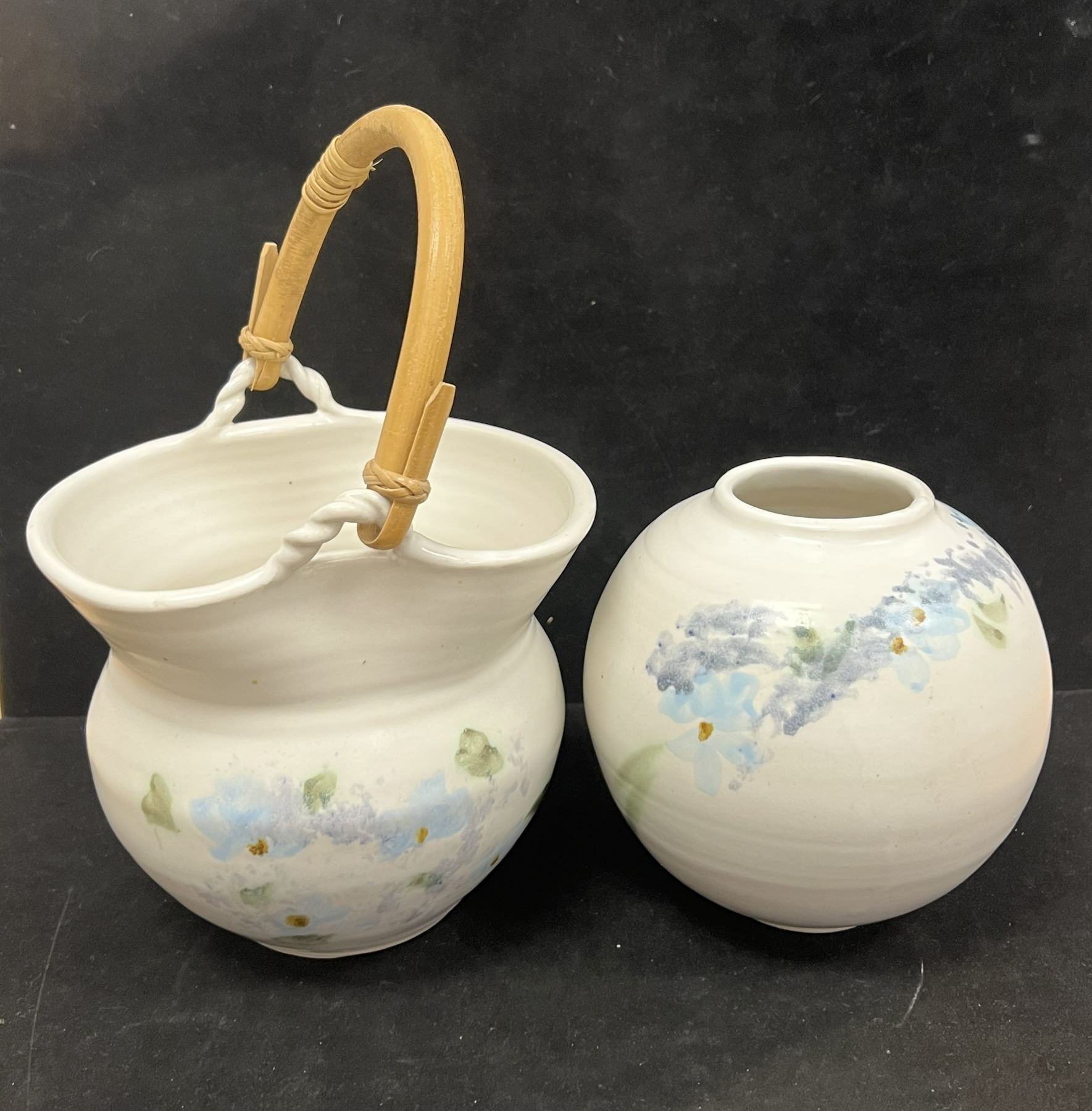 2 Artist Signed Studio Art Pottery Planters / Vases (largest approx: 6.5"W 6.5" tall)