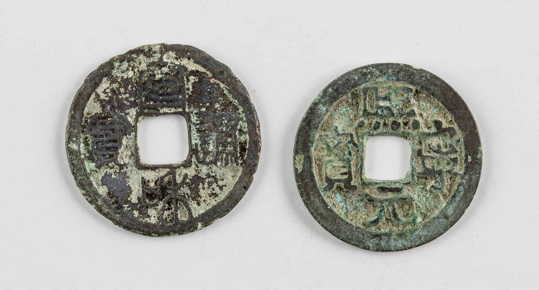 2 assorted Chinese Northern Song Dynasty bronze coin; a Xining (1068-1077) Yuanbao 1 Cash bronze coin, FD-950; a Xuanhe (1119-1125) Tongbao 2 Cash bronze coin, FD-1112;