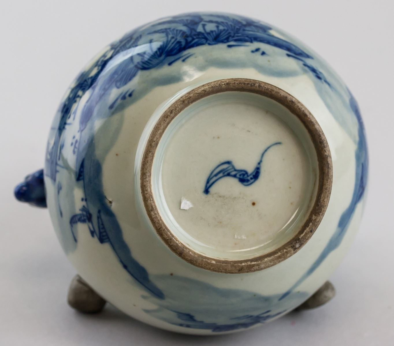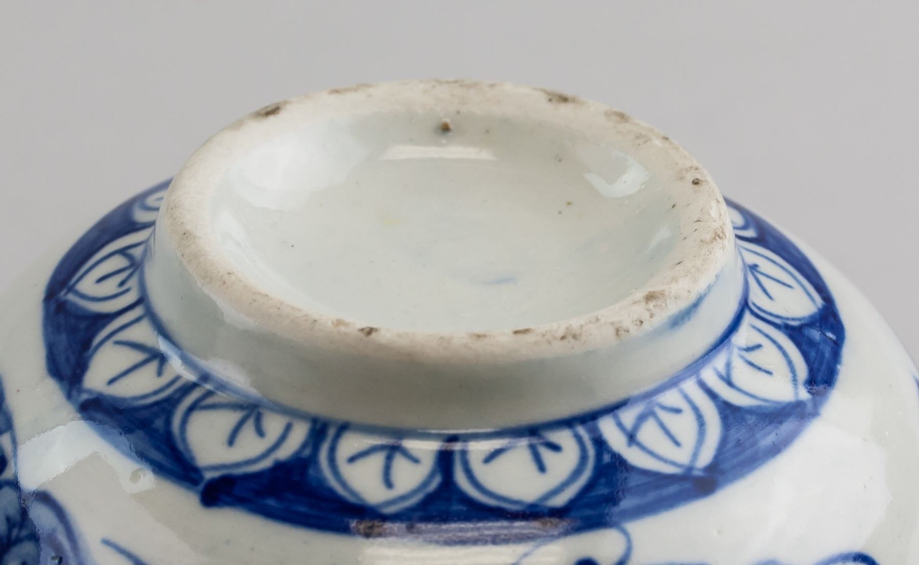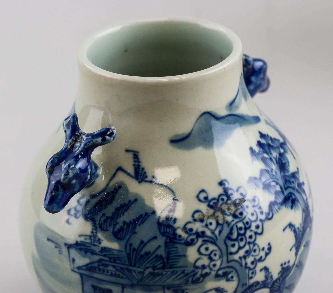 Two (2) assorted Chinese blue and white porcelain items. One bowl painted with birds and flowers. One vase with deer head handles, painted with mountainous landscape. 8 x 14 cm, 489 grams total