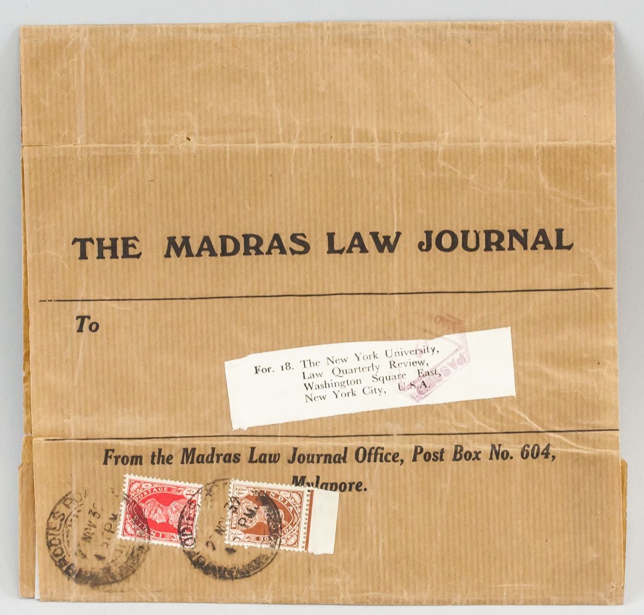 Two (2) assorted Indian stamps. Of various face value. On envelope stamped 1939. 18 x 18 cm