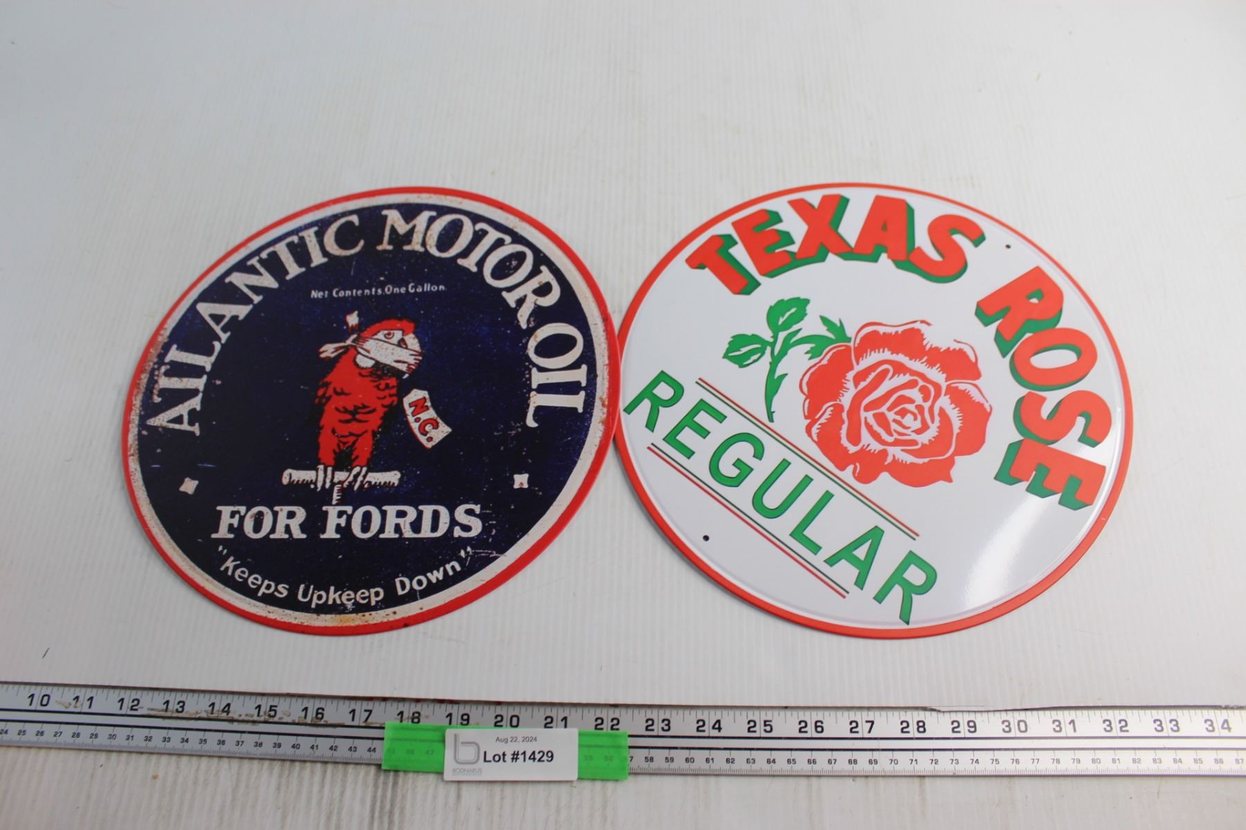 (2) Atlantic Motor Oil and Texas Rose Signs 12''