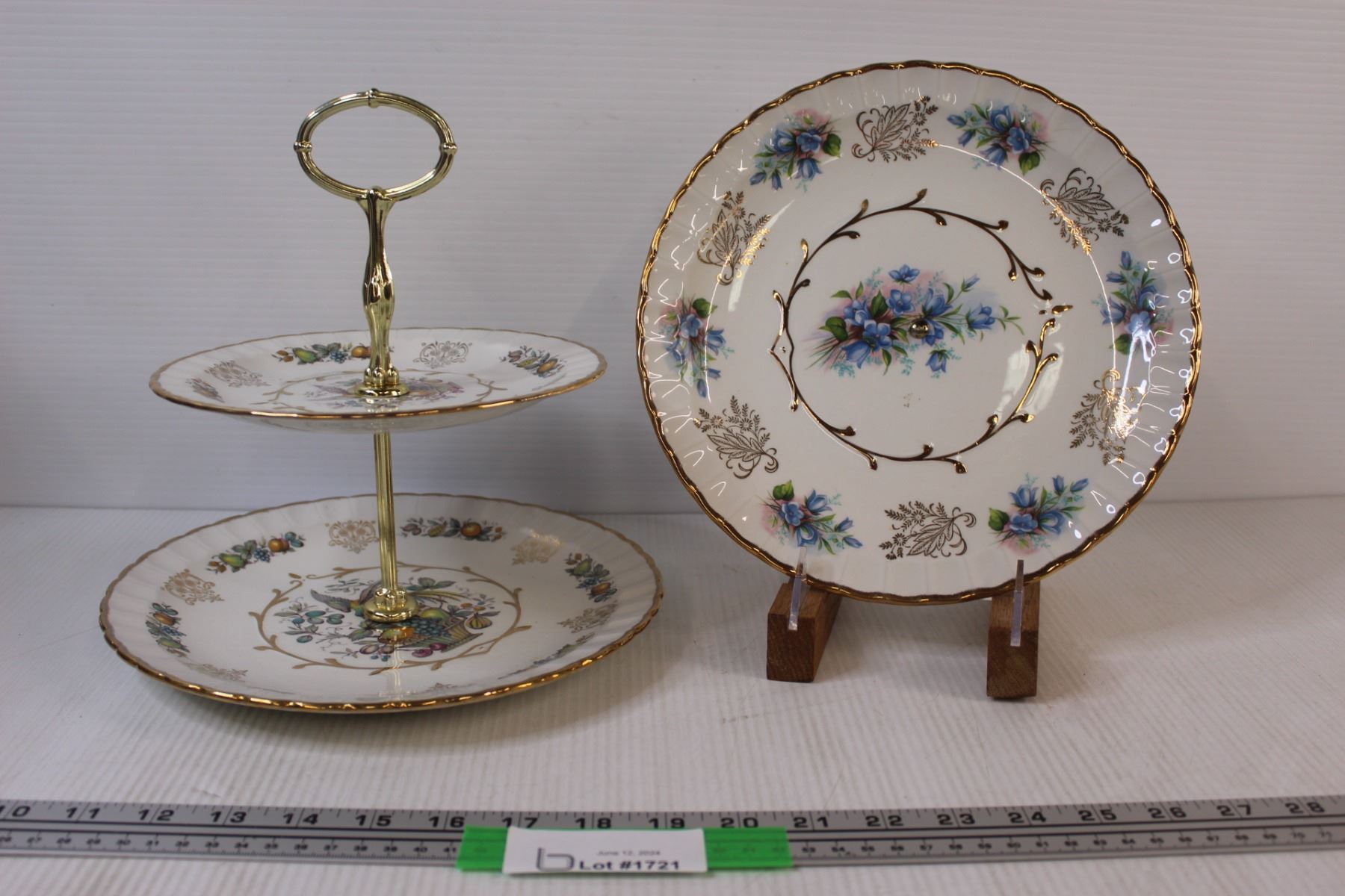 (2) Avon Chinaware: 2-Tiered Tidbit Tray & Pedestal Plate - Both With Gold Gilt Decoration